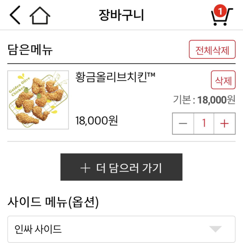 - 황금올리브 치킨 18,000원짜리 제품을 주문하면 됩니다.