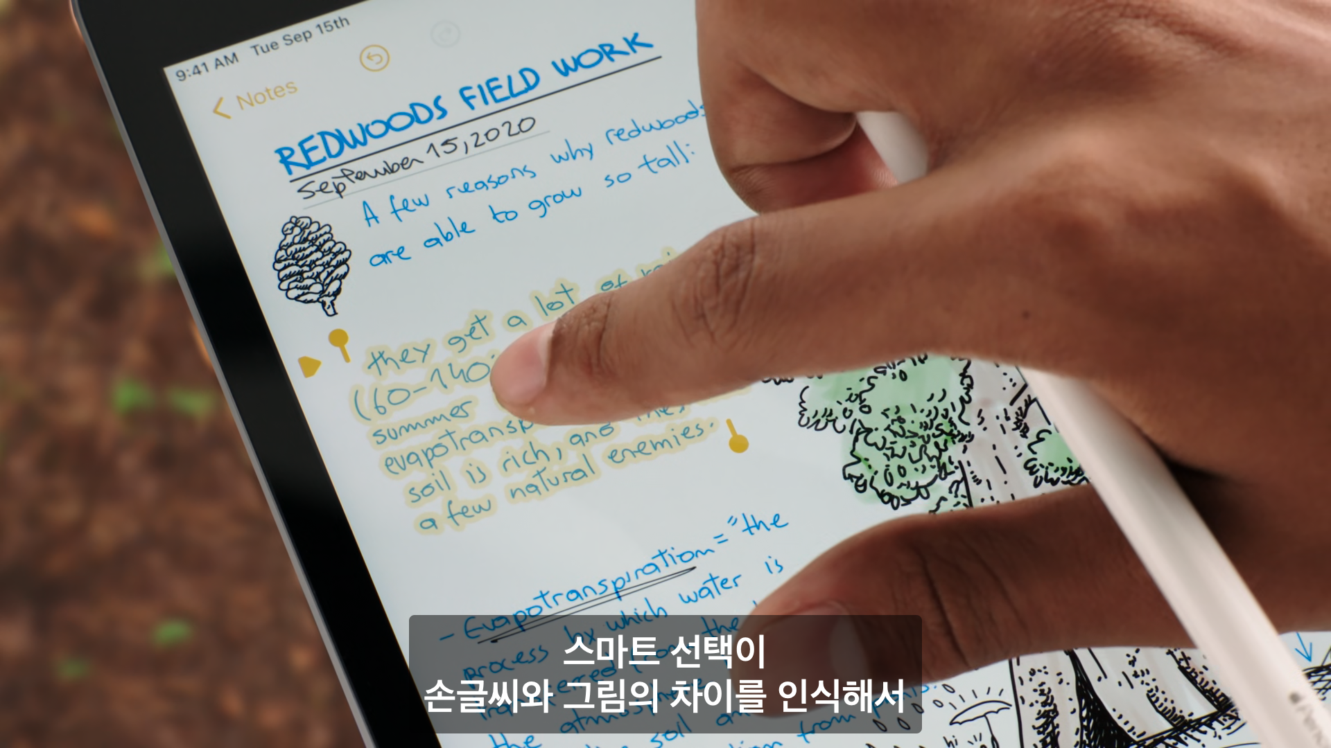 - 애플펜슬의 업데이트로 애플펜슬로 쓴 글씨를 인식하여, 문서에 붙여넣기 또는 텍스르로 입력이 가능해졌습니다. 또한 지우개 기능이 들어가 있어서 하단 사진처럼 글씨를 지우면 사라지게됩니다. 영어에 한정되어있는지 전 언어인지는 잘 모르겠습니다. (하지만, 아시아권은 좀 더 시간이 걸릴것 같습니다. 한자라던지 한글처럼 조합이 많아서 제대로된 인식이 어려울것 같긴하네요)