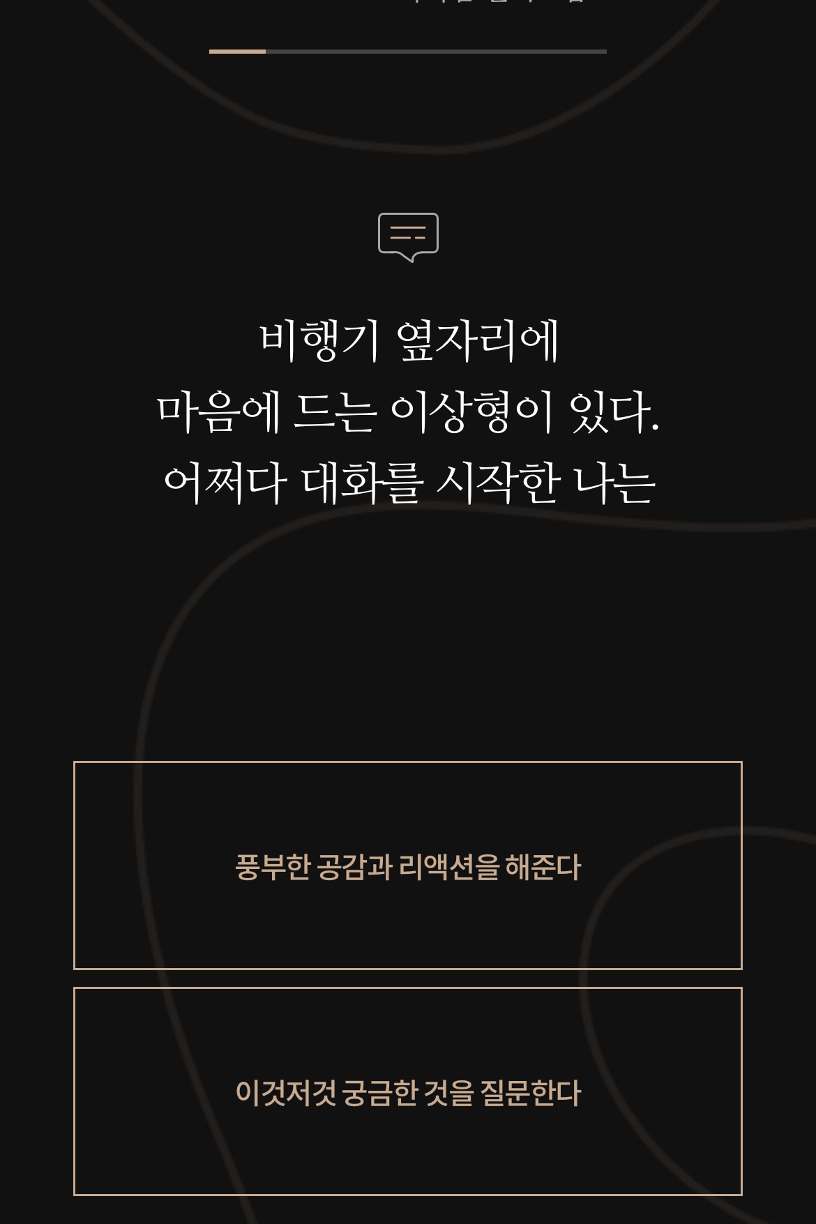 - 따로 로그인이나 가입이 필요없이 주어지는 문항 따라 객관식으로 답을 선택하면 됩니다. MBTI가 잘나오는 방법은 역시나 오래 고민하지 않고 맘이 이끄는대로 클릭하는것이 중요합니다. 너무 고민하다고보면 실제 나의 성격과는 다소 다른 결과가 나오기 때문이죠. 그래서 마음이 이끄는대로 선택하면 대략 1~2분안에 결과가 나옵니다.