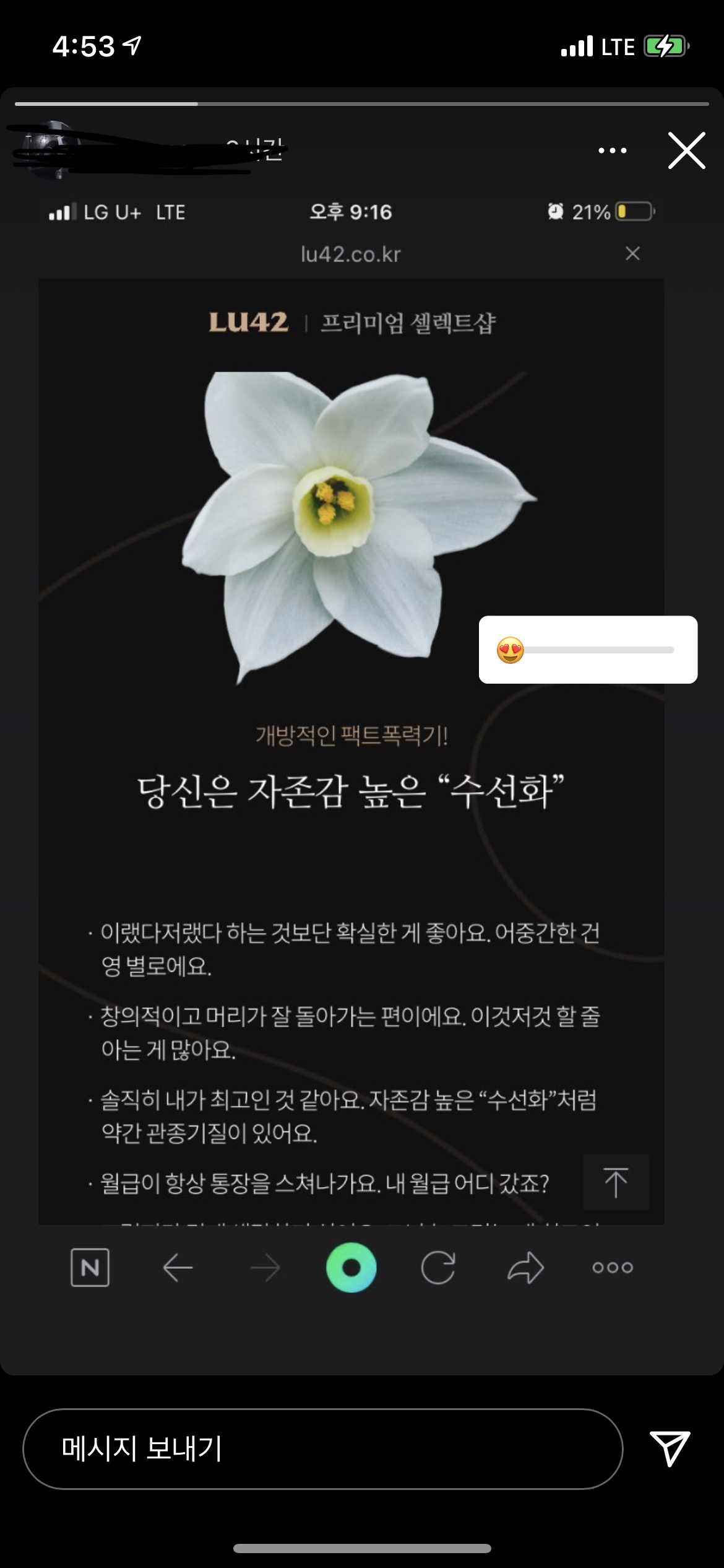 이렇게 요즘 핫한 꽃 MBTI를 알아보았습니다. 다들 해보셨나요?! 다른 MBTI 처럼 문항이 많치 않아서 쓱쓱 넘기다보니 금방 결과가 나오더라구요. 재미있기도 하고 위에도 썻다시피 이미 인스타그램 친구분들 지인분들도 자기 결과 올리셔서, 나랑 똑같은 분도 있는것 같고 반대이신분들도 있어서 신기했네요. MBTI가 이렇게 흥할줄 어떻게 알았을까요?!