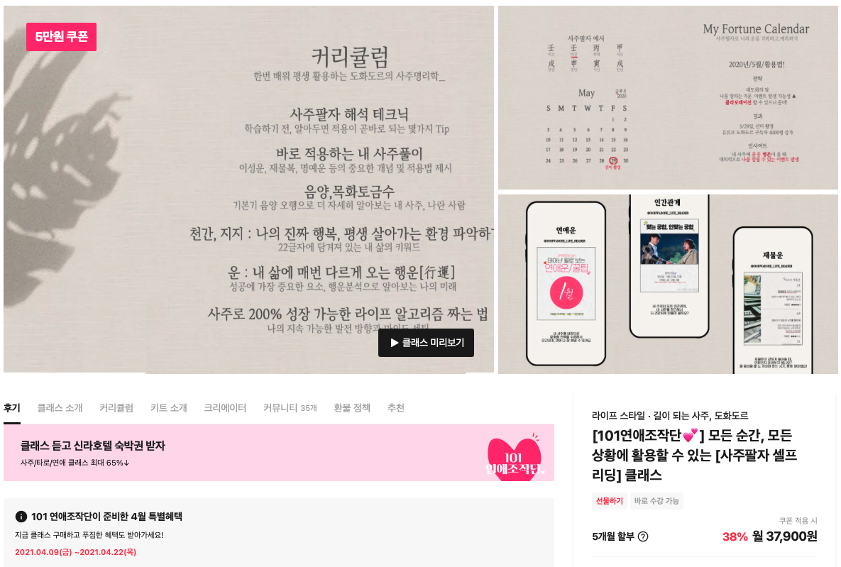 내돈내산 클래스 101 인기강의 도화도르님 사주팔자 수강한 후기