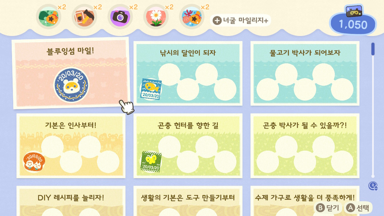 일상적인 부분들이 많아서 (예를 들어 물고기를 5마리 잡아오기, 5,000벨이상 쇼핑하기, DIY 3번 만들기 등) 이에 따라서