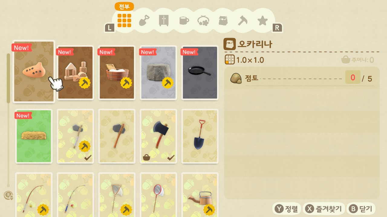 네! 초반에 사두면 좋은건 당연 "언제나 쓸 수 있는 도구 레시피" 라고 너굴 마일리지로 살 수 있는 DIY 레시피 셋트 입니다!