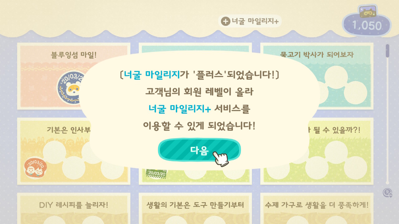 너굴 마일리지+ 조건을 클리어 했는데 아무런 변화가 없어요!?