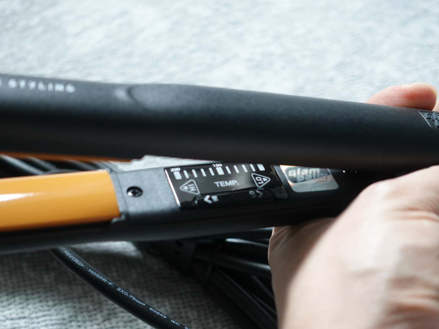 그리고 고가형 고데기라서 들어있는 특징일까요? 글램팜 고데기는 온도 조절이 가능합니다. 최저 100도에서 최대 200도까지 온도 설정이 가능하며 10도 단위로 조절이 가능합니다. 보통은 160~170도에 맞춰 사용하고 있습니다.