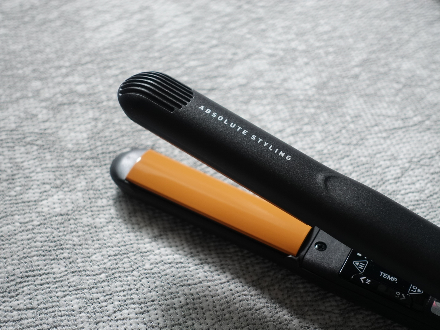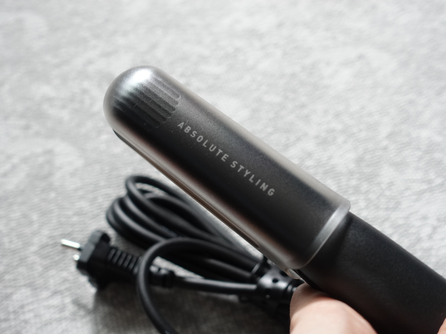 그리고 해드의 보호캡을 빼면 드디어 중요한 고데기 열판이 나옵니다. 말씀드렸듯이 볼륨을 주는 고데기로 평평한 플랫한 열판이 아닌 아치형으로 굴곡이 있는 형태를 가지고 있습니다. 노랑색과 검은색의 조합이 참 좋네요.