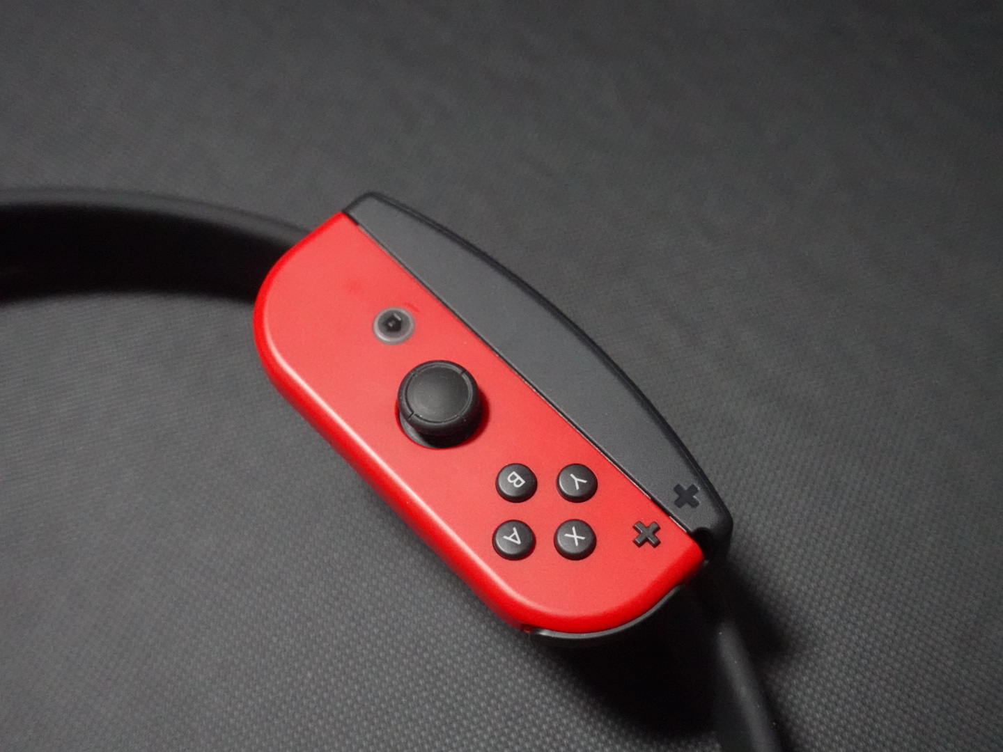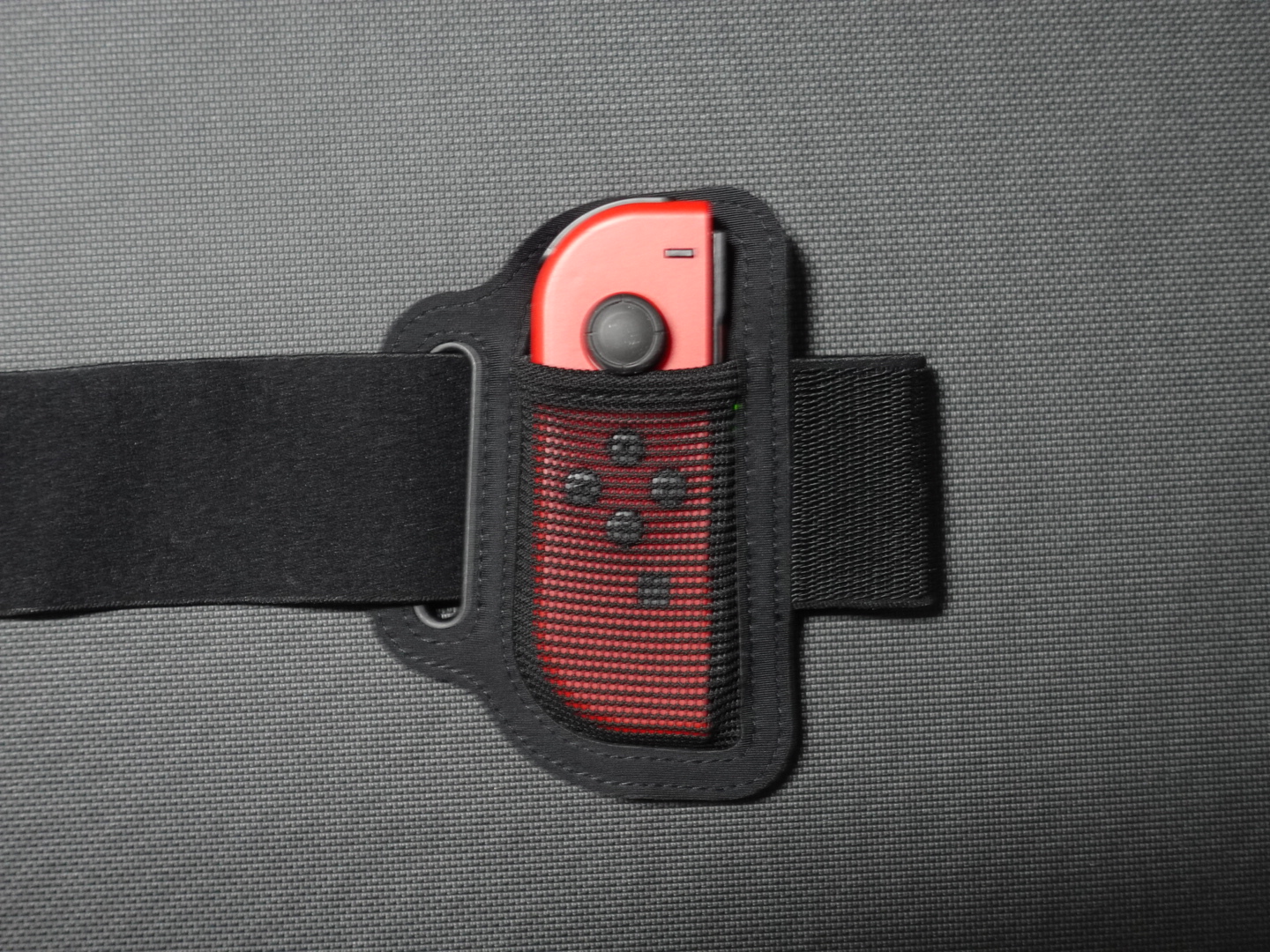 그리고 또 하나의 도구인 레그 스트랩입니다. 레그 스트랩에도 다른 한 쪽의 조이콘을 장착해서 왼쪽 허벅지에 착용합니다.