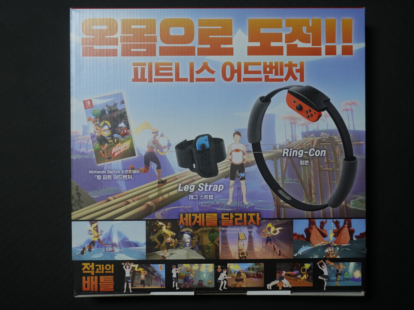 패키지의 구성은 링 피트 어드벤쳐 게임 타이틀 1개, 링콘 1개, 레그 스트랩 1개로 정말 심플합니다.