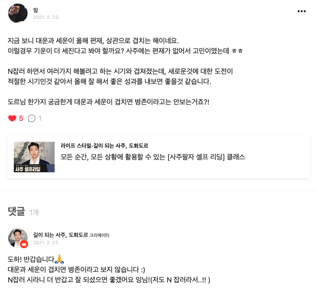 [도화도르님의 클래스 101 사주팔자 강의] https://class101.app/e/dohwadore-class