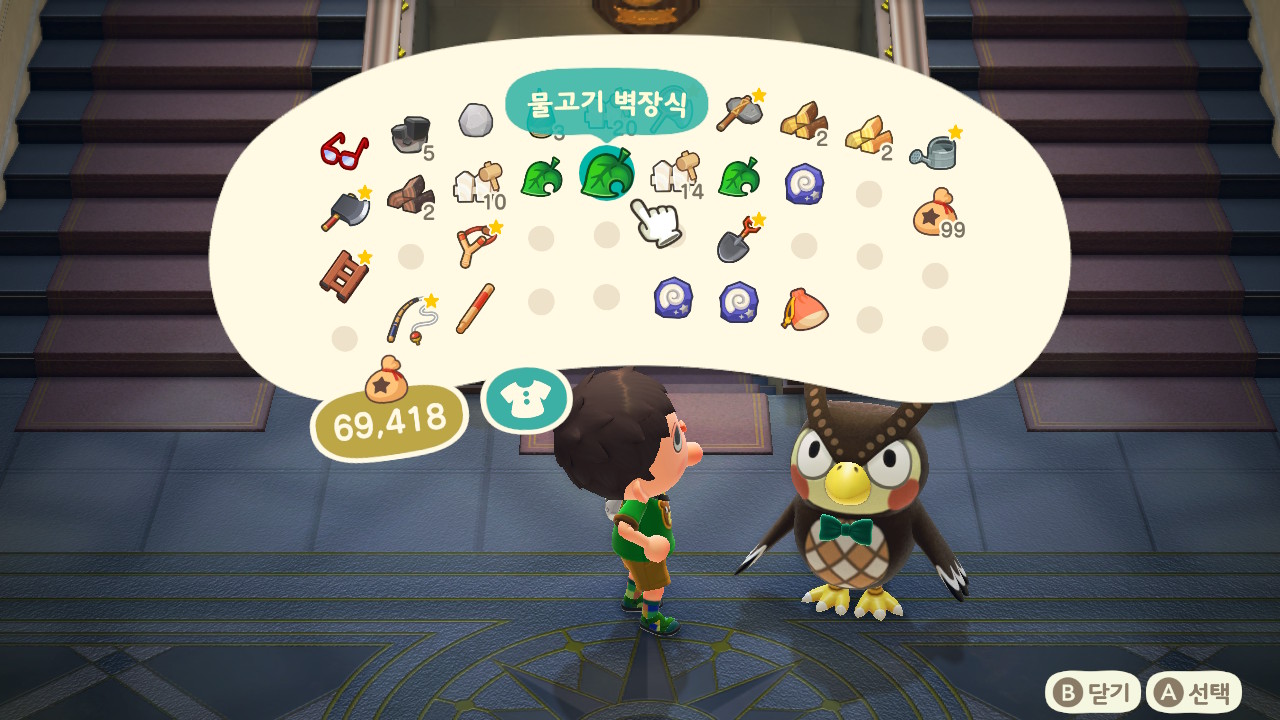 선물은 곤충 벽장식, 물고기 벽장식, 화석 벽장식 총 3가지 입니다.