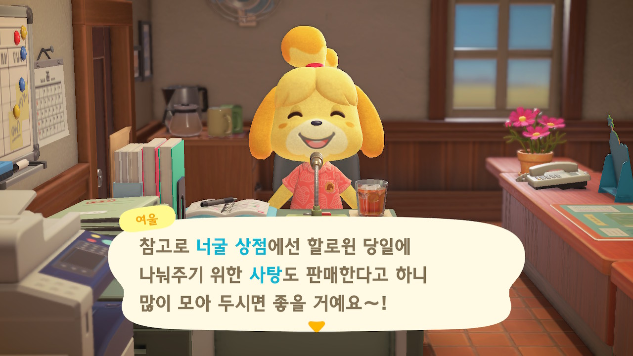 - 너굴상점의 인테리어가 할로윈으로 바뀌었습니다. 그리고 사탕은 너굴상점에서 하루의 1개밖에 구매가 불가능합니다.