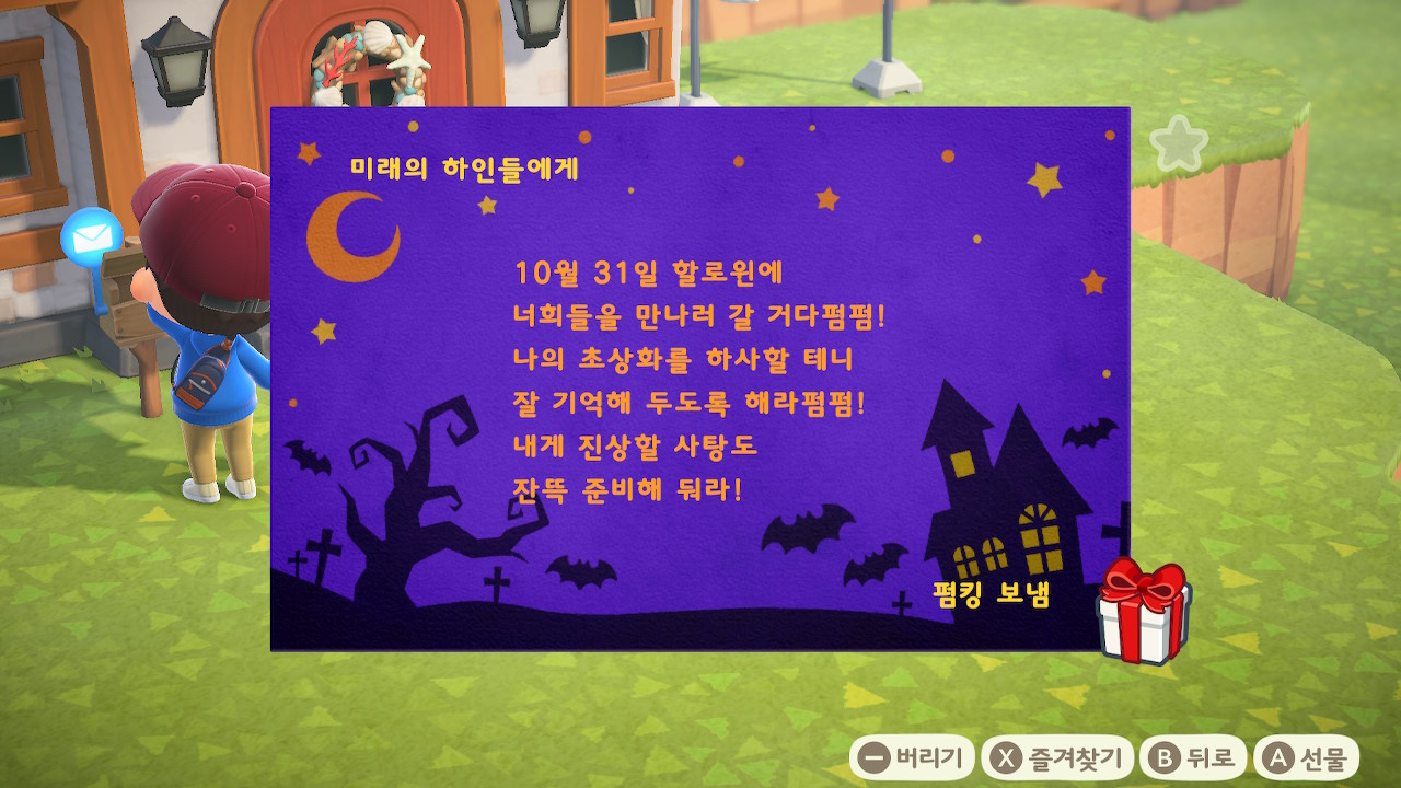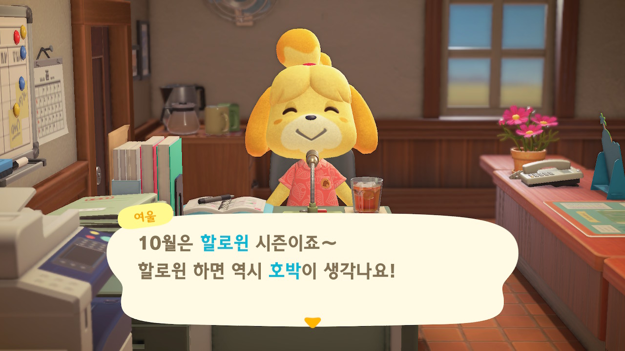 벌써 10월이네요! 추석연휴는 잘 보내고 계신가요? 즐거운 명절에도 닌텐도와 함께 가족들과 즐거운 한가위를 보내고 계실 여러분들께 새로운 동물의 숲 업데이트 정보를 가지고 왔습니다! 10월은 할로윈 시즌으로 동물의 숲도 할로윈 이벤트가 시작되었습니다. 그럼 닌텐도 스위치와 함께 동숲 정보를 즐겨보도록 하겠습니다.