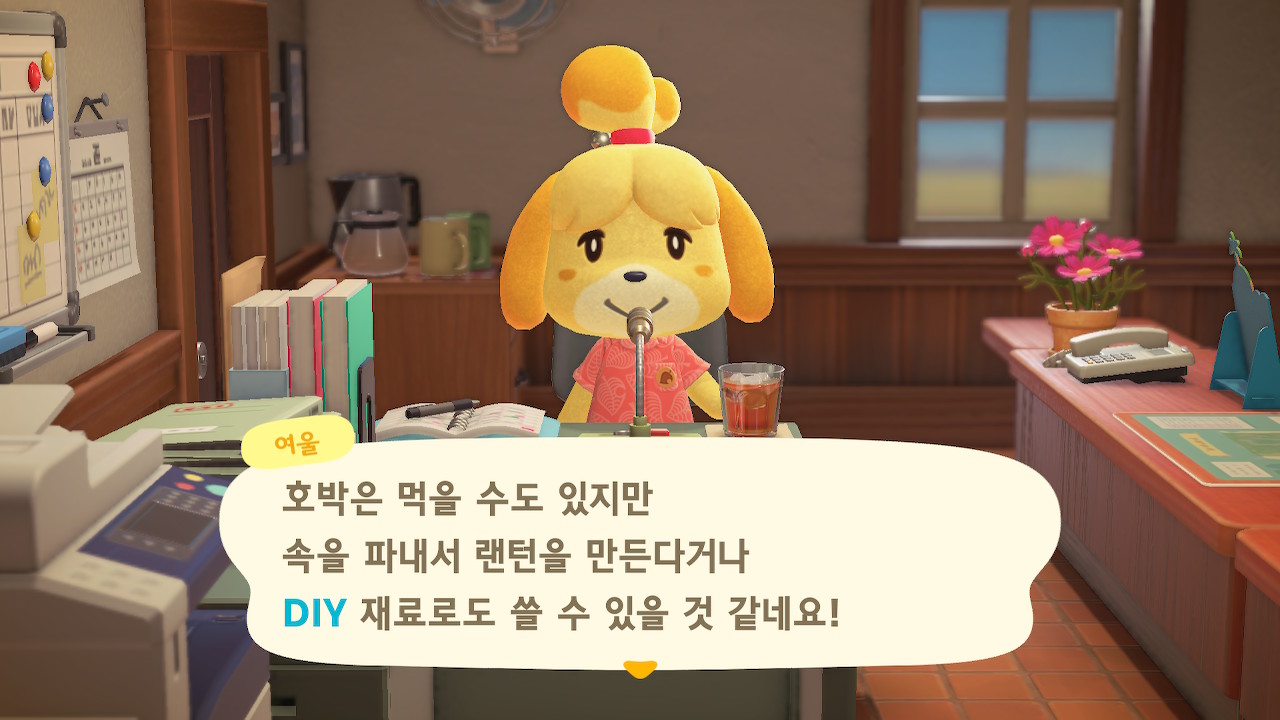 - 호박 모종은 늘봉이한테 구매(140벨)하는게 훨 쌉니다. 너굴상점이 280벨로 2배 비싸니 늘봉이한테 잔뜩 구매해두시기를 추천드려요!