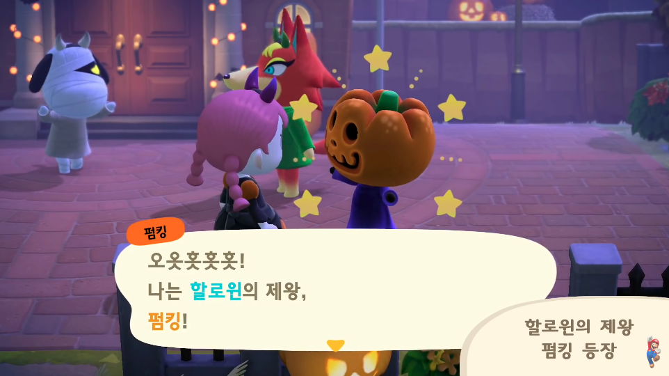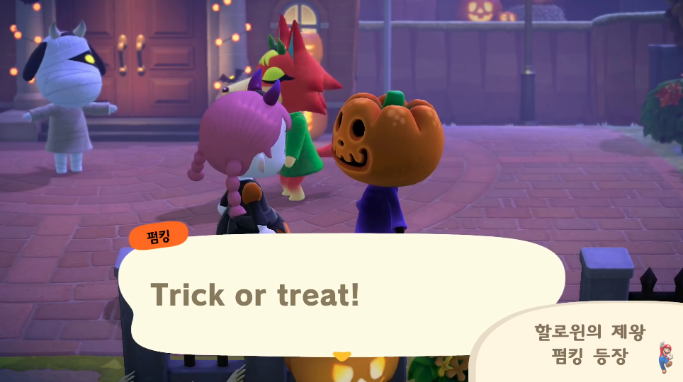 - 펌킹으로 변장하고 주민들을 찾아가서 캔디를 얻습니다!! (무서워서 다들 한 번에 주네요!! ㅋㅋ)