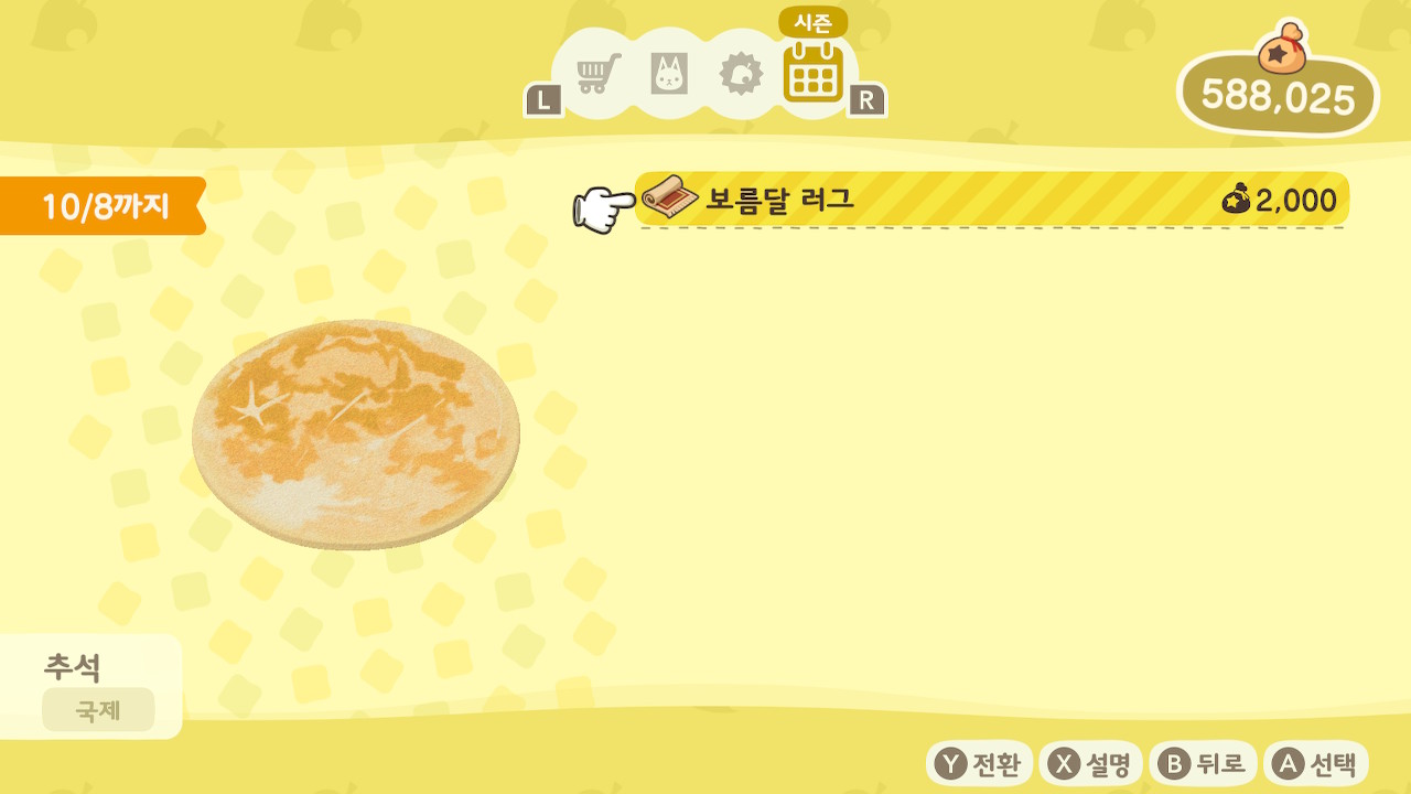 - 캔디를 땅에 놓으면 달아서인지 개미가 꼬입니다. ㅋㅋ 그리고 벨스토어에는 10/8일까지 보름달 러그가 구매가능합니다.