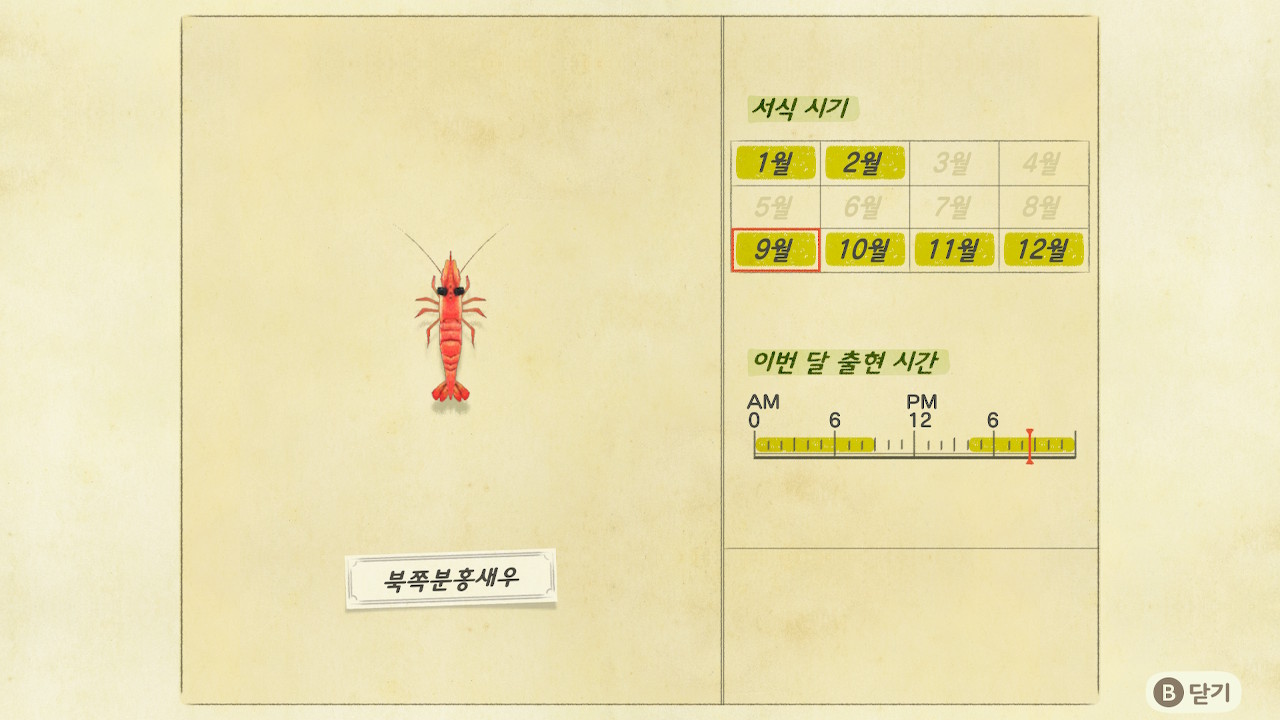 아 뭔가, 물고기는 잘 안땡기는데 아무리 게임이라지만 해산물이 자꾸 땡기네요. 가을이라 굴과 소라, 조개 같은 해산물들이 새롭게 추가 되었습니다. 문어와 새우까지 딱 가을가을한 느낌이네요. 동숲에서 나중에 요리를 만들 수 있는 기능이 생긴다면 어떨까 싶을정도로 맛있는 녀석들이 한가득하네요.