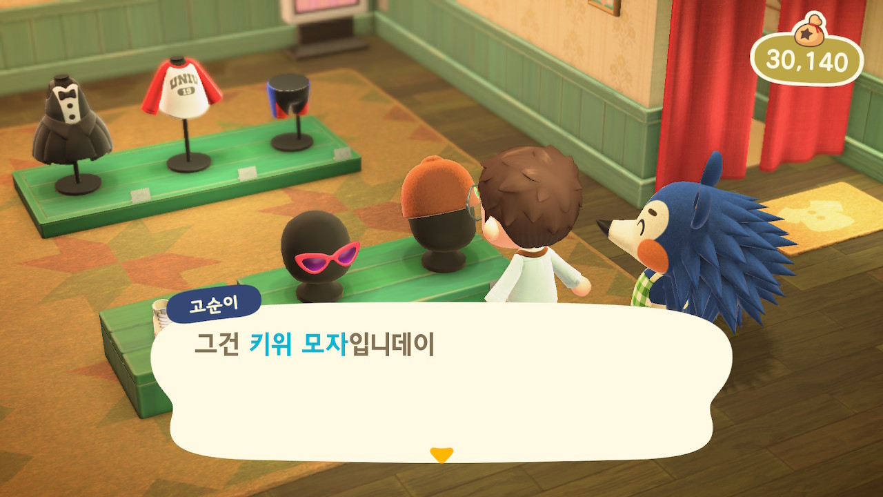 고순이네 옷가게는 인테리어가 변경되었다기보다는 옷들도 이제 AW시즌으로 바뀌었어요. 여성복의 경우 트랜디한 체크패턴의 상하의가 들어왔고, 남성복은 가을하면 등산(?!) 인지 ㅋㅋ 등산복이 들어와있어요. 동물의 숲도 등산복은 필수 아이템인가봅니다. 진짜 옷들이 리얼해서 그런지 참 이상한 기분이였어요. 아재유저 맞춤템 같아서....