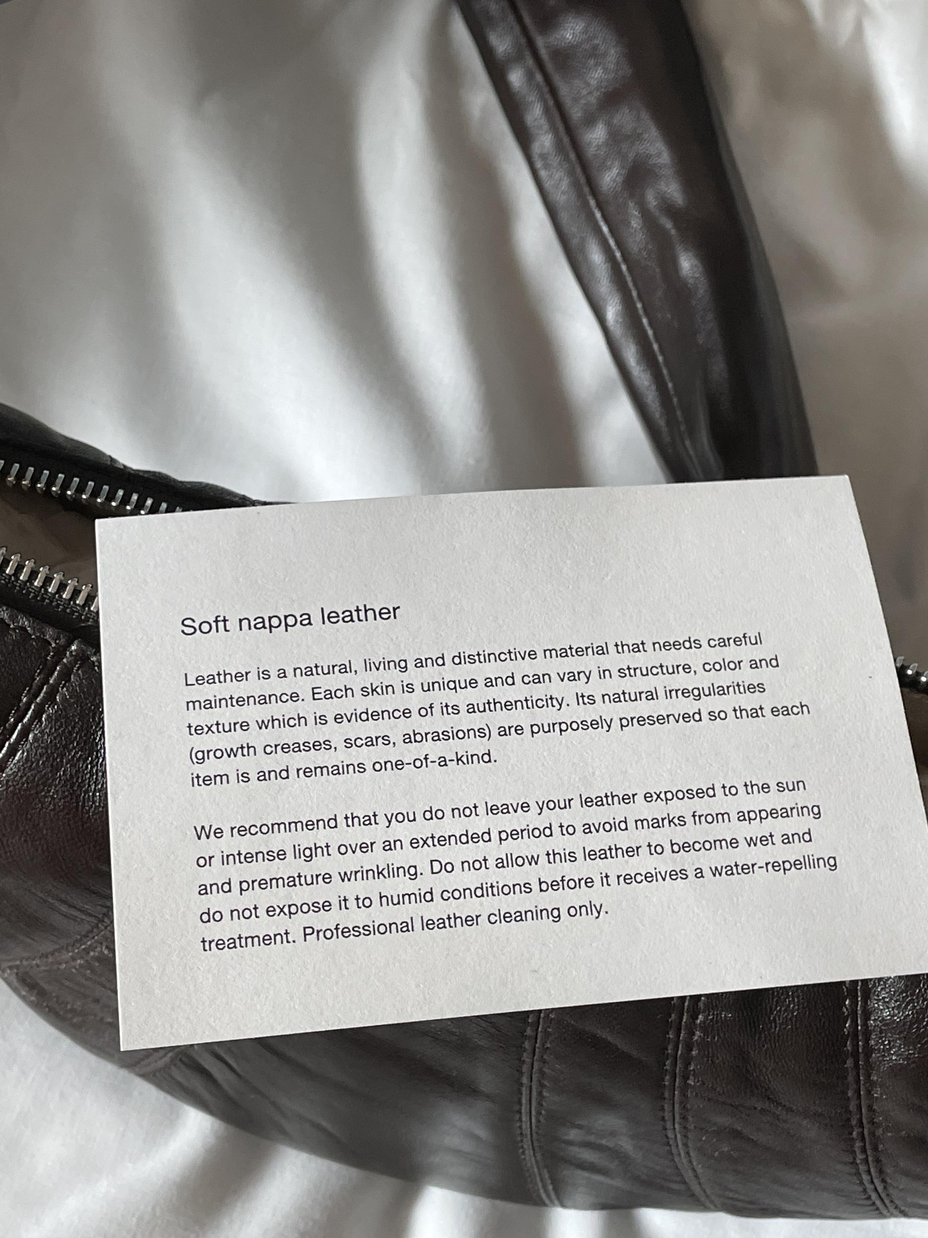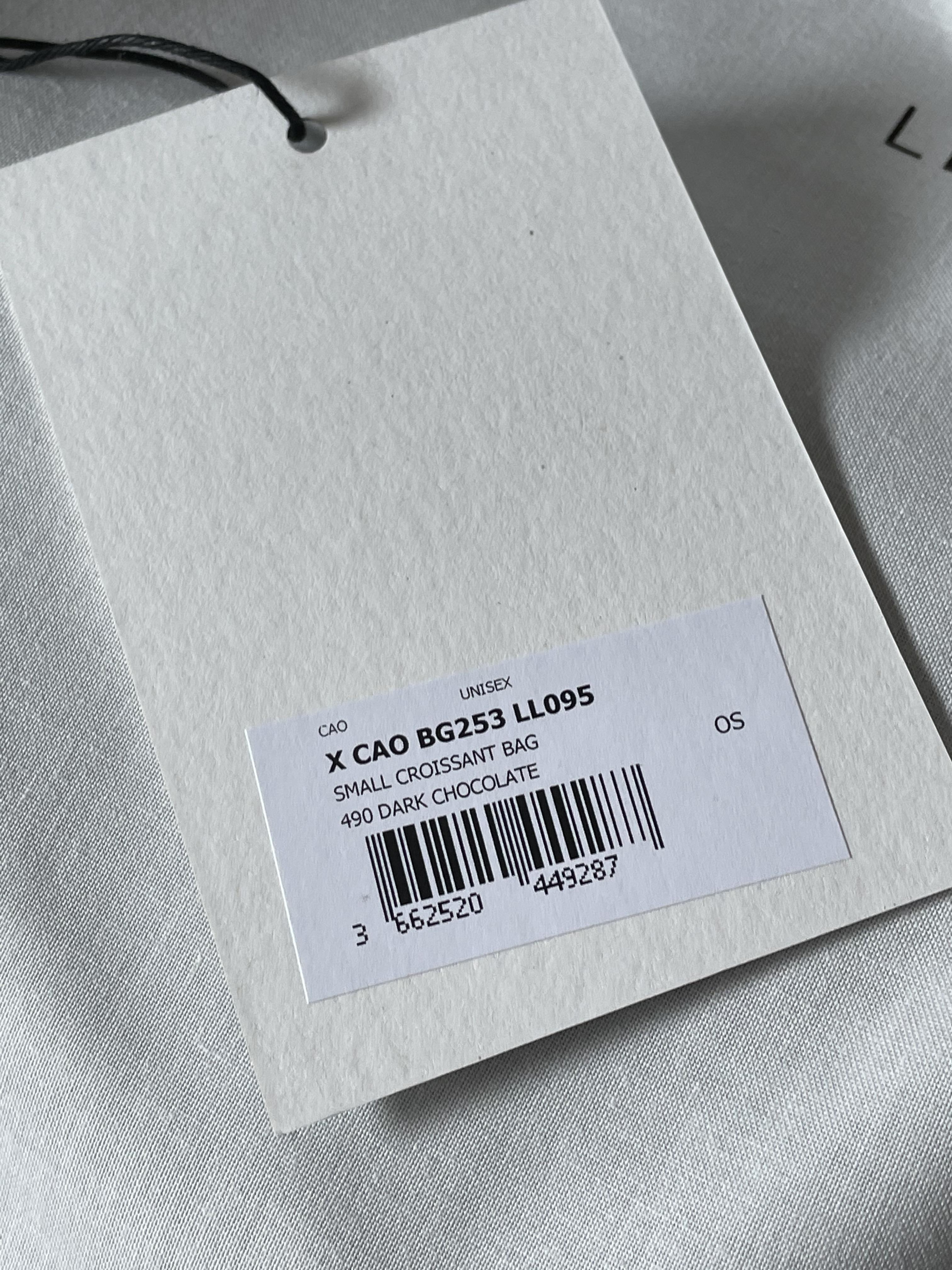 르메르 로고가 박힌 더스트백도 참 저게 뭐라고 할정도로 심플하지만 느껴지는 미니멀리즘 ㅎㅎ 그리고 택에는 제가 구매한 제품정보가 써져있습니다. 스몰사이즈의 크로아상 백 컬러는 다크 초콜릿으로 구매하였습니다. 아 참고로 르메르의 모든 백은 남여공용으로 출시되었습니다. 간혹 여성용 아니냐는 오해도 있는데 남자가 매어도 충분히 멋진 녀석입니다.