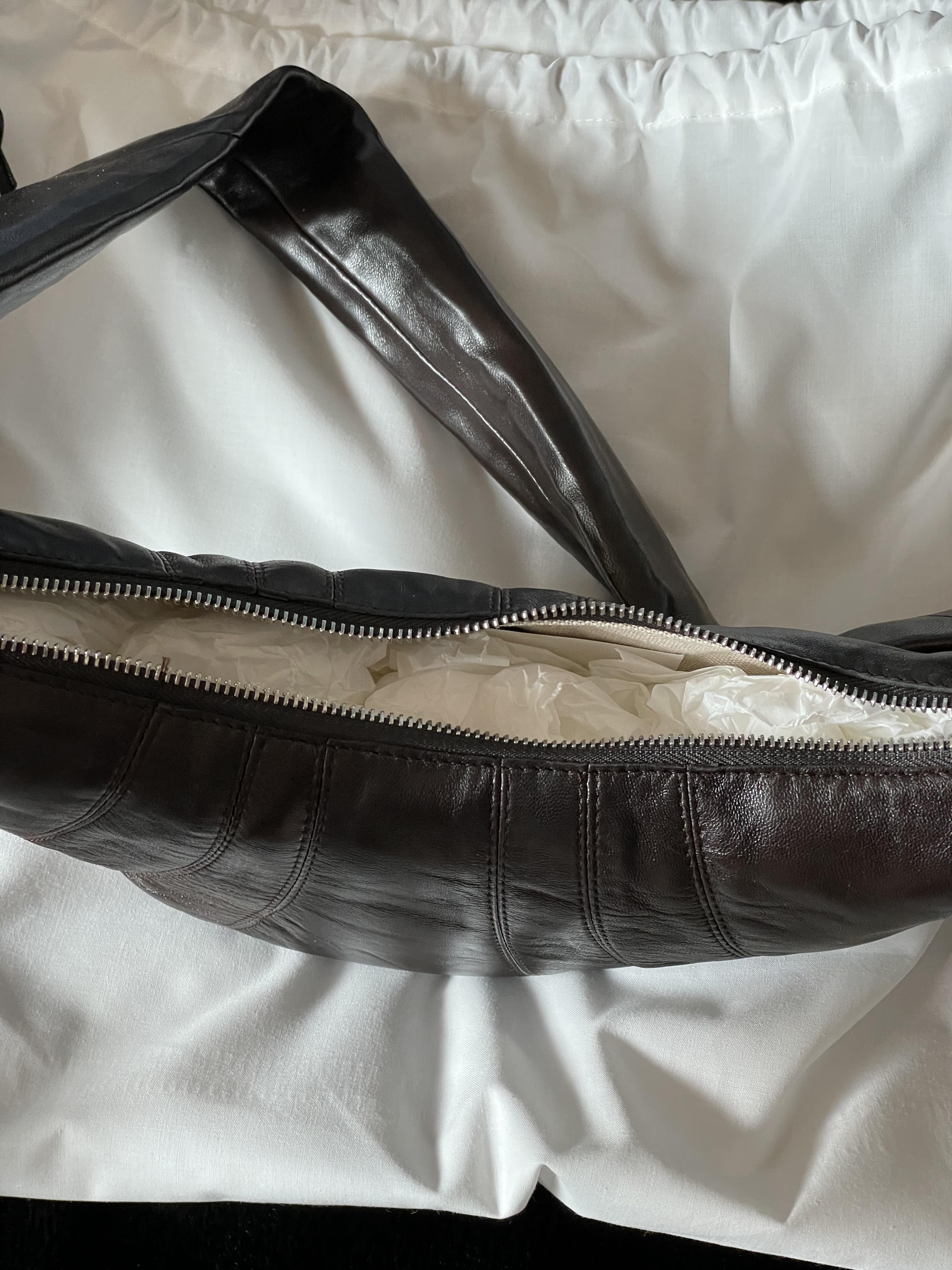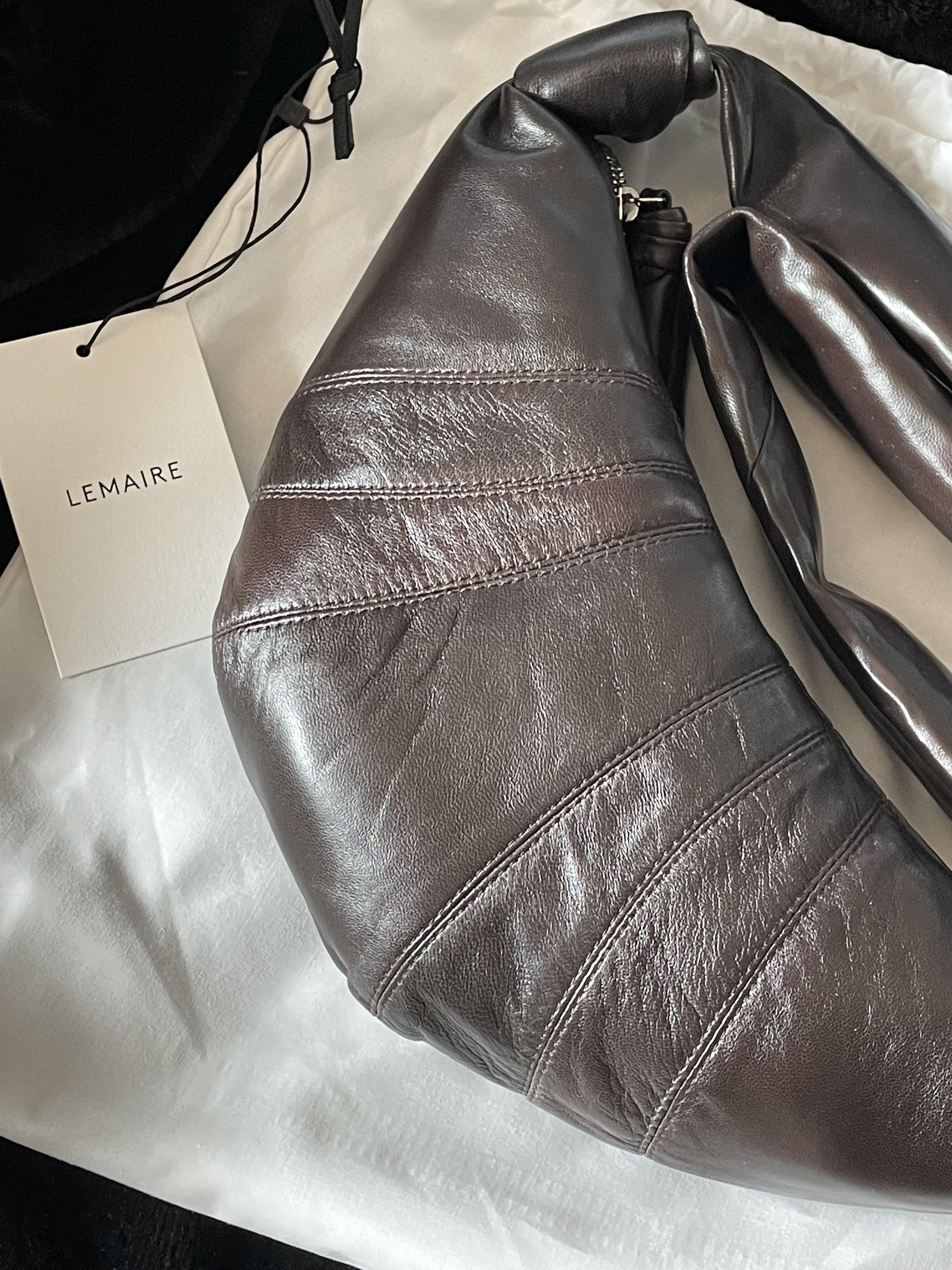 - 르메르가 주는 이미지를 가장 잘 나타내주는 아이템중 하나인 크로아상 범백이였습니다. 사실 저도 처음엔 그냥 초코빵 크로아상 빵 모양이라서 그렇게 끌리지는 않았는데, 보면 볼수록 끌리는게 구매하고 나닌까 왜 사는지 알것 같았습니다. 끈 조절이 안되는게 조금 흠이라 겨울철 두꺼운 패딩등에는 안어울리는데 정말 가볍기때문에 휘뚜루 마뚜루 쓰기 너무 편합니다.