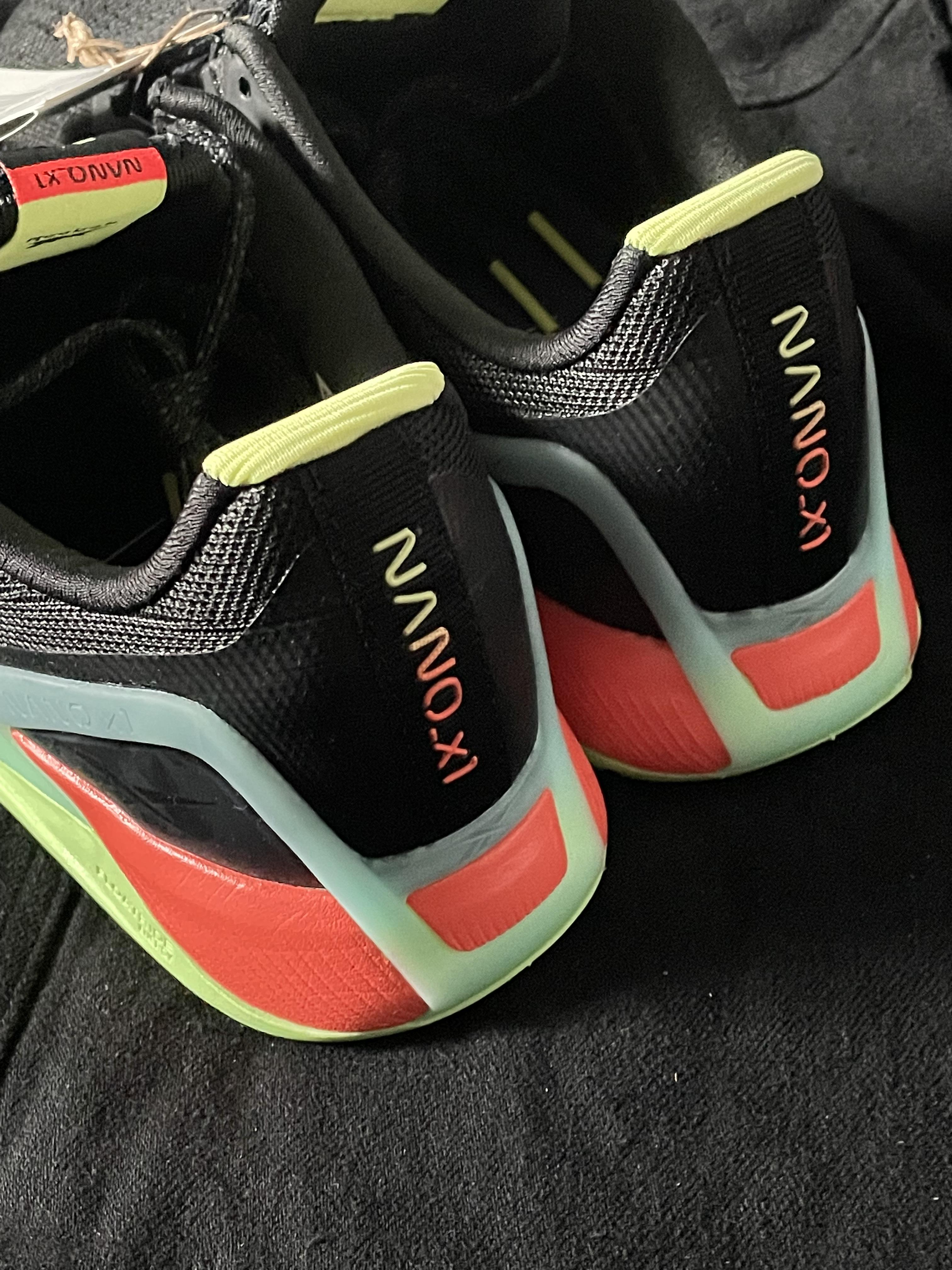 박스를 열고나닌까 나오는 리복 나노X1 운동화 옆모습니다. 옆에 나노X1 이라고 적혀있고. 형광 패턴으로 밑창과 뒷부분을 포인트 준게 인상적입니다. 사실 너무 색상이 화려한거 아닌가 싶긴했는데, 헬스장에서는 어느정도 포인트는 줄 수 있다고 생각하니 기분이 좋았네요.