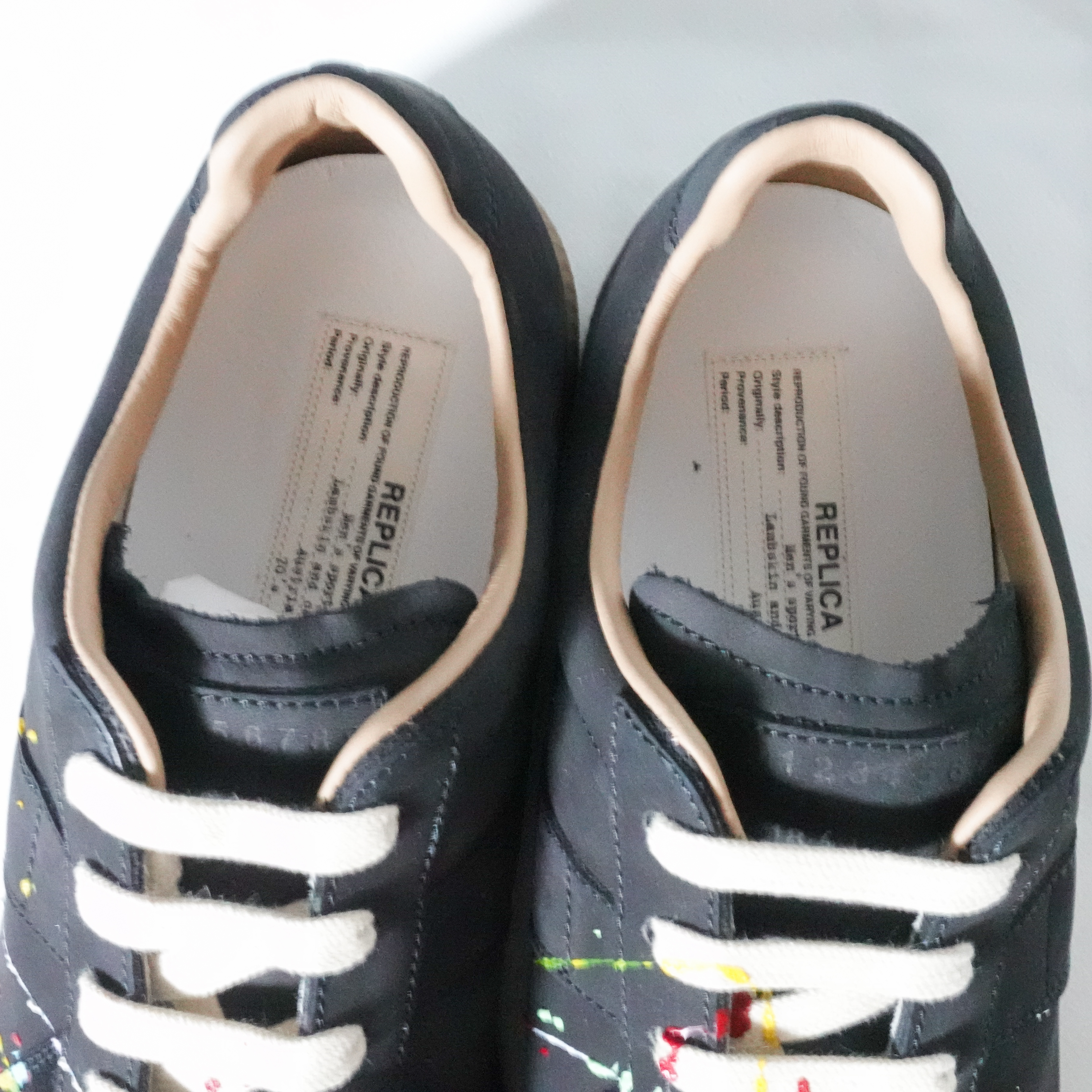 그리고 더스트백 아래는 기다리고 기다리던 마르지엘라 독일군 블랙 페인팅이 들어가 있습니다. 색상이 영롱하네요. 정말 개인적으론 화이트가 안끌리는데 이렇게 블랙색상을 보니 너무 잘산것 같습니다. 페인팅이 보이는데 이게 전부 수제라서 같은 페인팅 모델이라도 페인팅의 패턴이 달라서 보는 재미가 쏠쏠합니다.