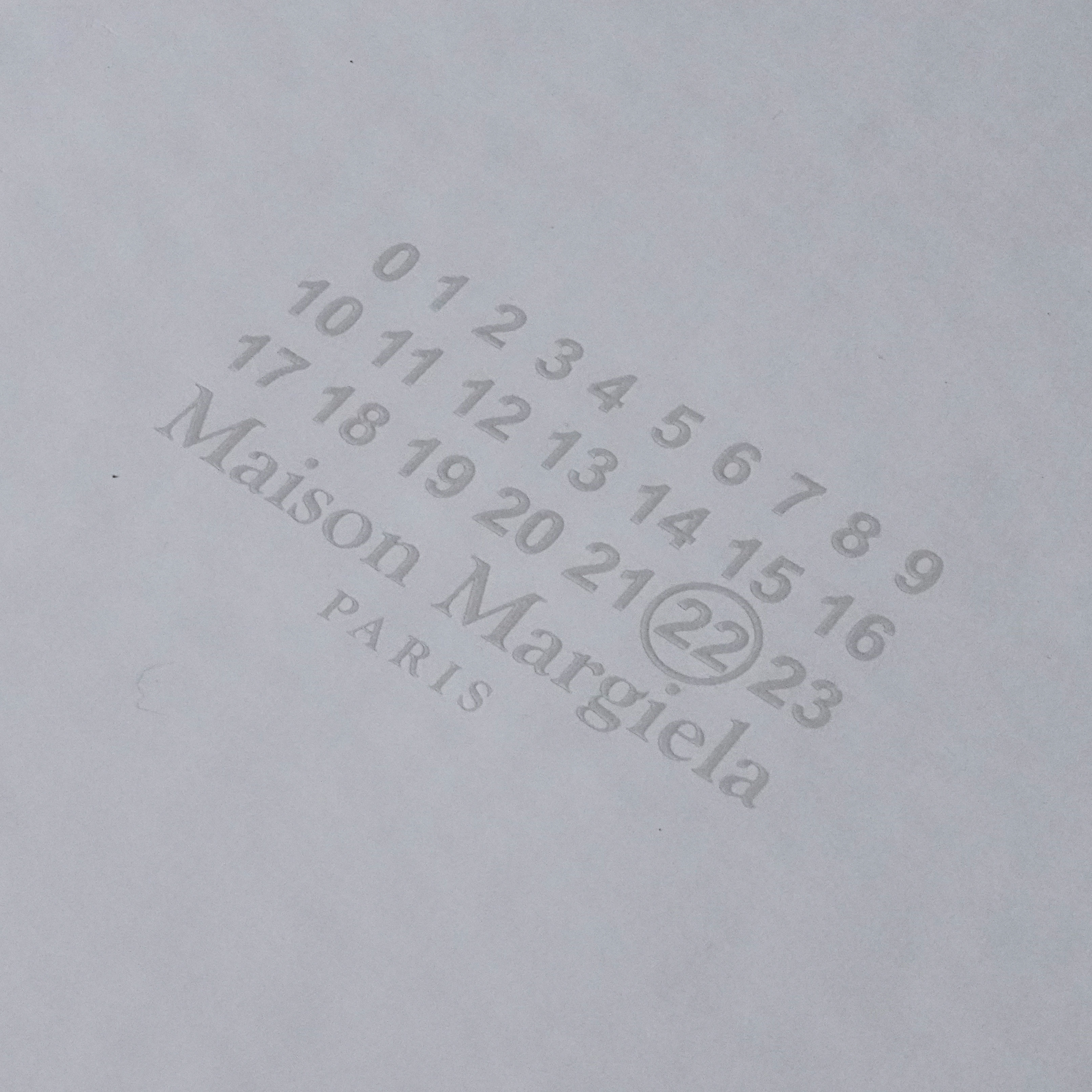 마르지엘라 브랜드 시그니처 같은 넘버링이 새겨진 박스에 담겨져서 오는데요. 저 번호들이 의미하는 숫자는 마르지엘라에서 출시되는 제품의 카테고리 (의류, 신발, 가방, 악세사리 등) 별로 나눠져서 동그라미를 친다고 합니다. 제 경우 신발이라 22번 숫자에 동그라미가 쳐진 박스에 신발이 담겨져왔습니다.