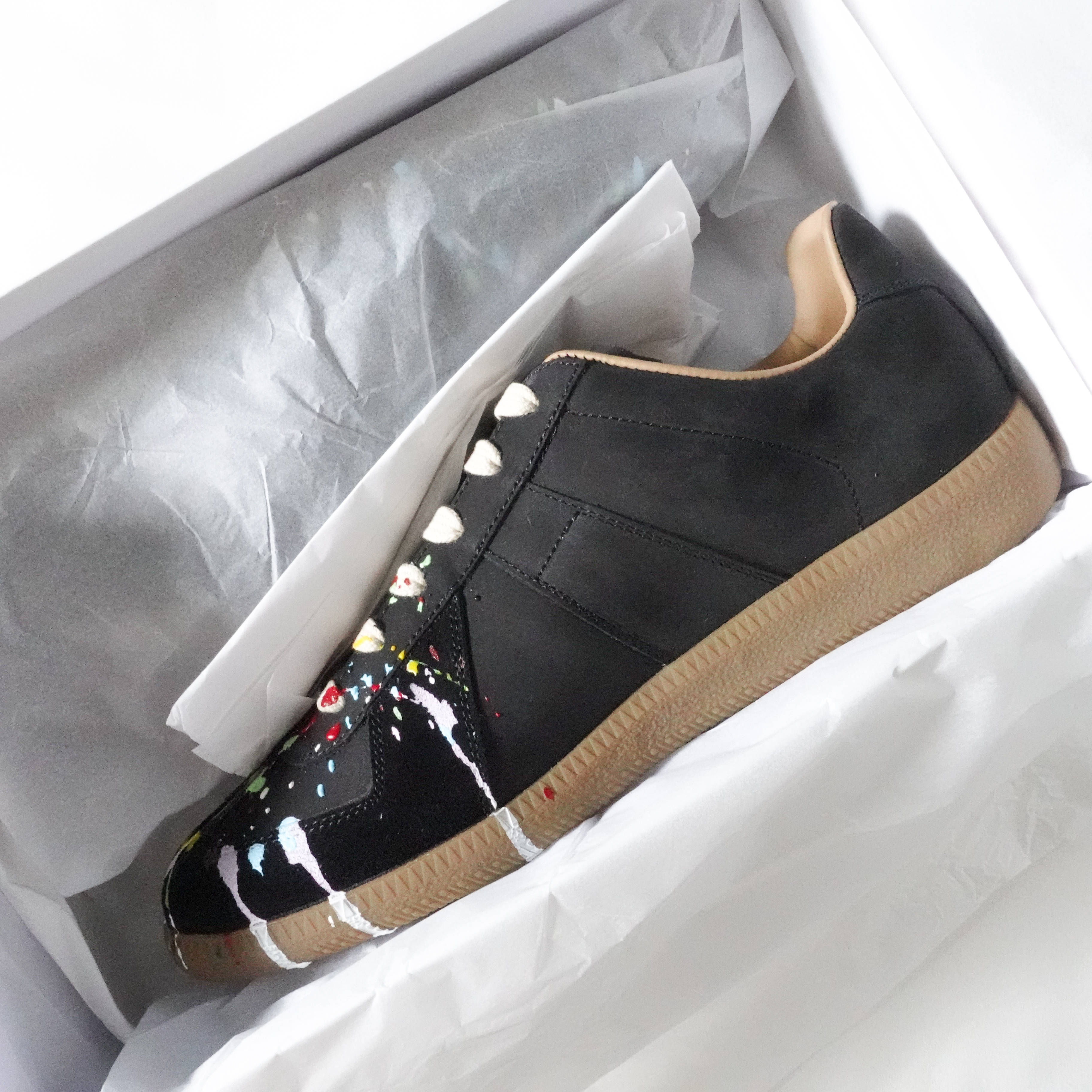 그리고 더스트백 아래는 기다리고 기다리던 마르지엘라 독일군 블랙 페인팅이 들어가 있습니다. 색상이 영롱하네요. 정말 개인적으론 화이트가 안끌리는데 이렇게 블랙색상을 보니 너무 잘산것 같습니다. 페인팅이 보이는데 이게 전부 수제라서 같은 페인팅 모델이라도 페인팅의 패턴이 달라서 보는 재미가 쏠쏠합니다.
