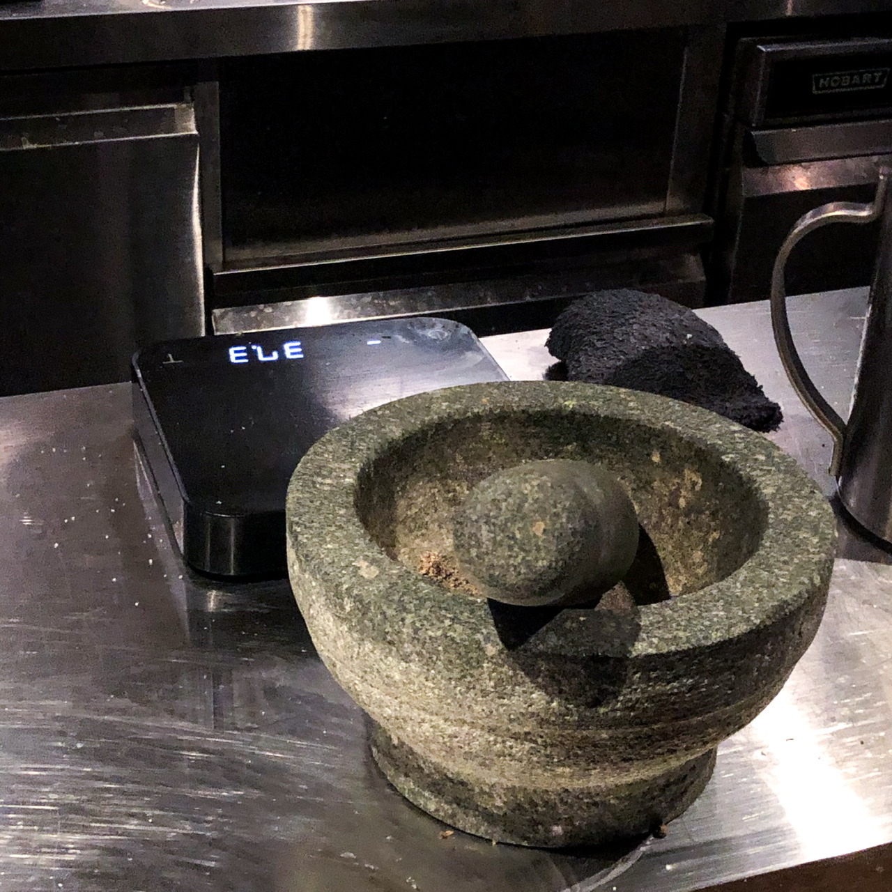 사진에 보이는 절구에 통후추를 넣으신다면 빻아서 올려주시더라구요. 상당히 신기하기도 하고 신선했습니다.