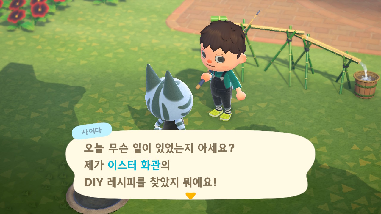 이스터 DIY 레시피를 얻는 방법은 다양합니다. 하늘의 나는 달걀을 얻기 위해 선물상자 풍선을 쐈을때 달걀대신 레시피를 주는 경우도 있고 마을주민과 이야기 하다가 얻는 경우도 있으니 한가지 방법으로 모든 DIY 레시피를 얻기는 힘들것 같네요!