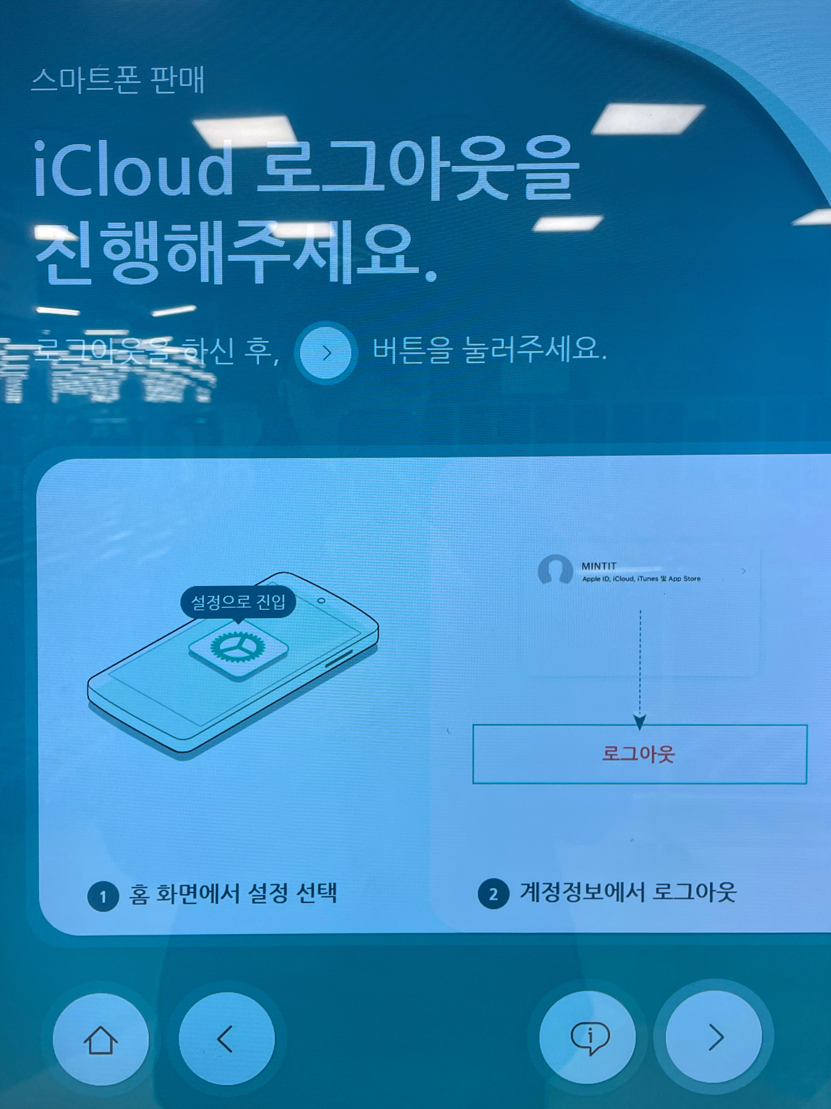 그러고 난 다음 OS 형태를 묻는데요, 아이폰은 iOS 그리고 갤럭시나 LG폰등은 안드로이드를 선택해주시면 됩니다. 저는 아이폰X라서 iOS를 선택하였습니다. 여기서부터 진단을 위해서 간단한 셋팅이 필요합니다. 먼저 화면이 꺼지지 않도록 자동잠금시간을 1분 이상 설정하고, iCloud 계정 로그아웃을 합니다. 그런다음 접수를 위한 스티커가 발행되는데요. 이 스티커를 핸드폰 후면에 부착해줍니다.