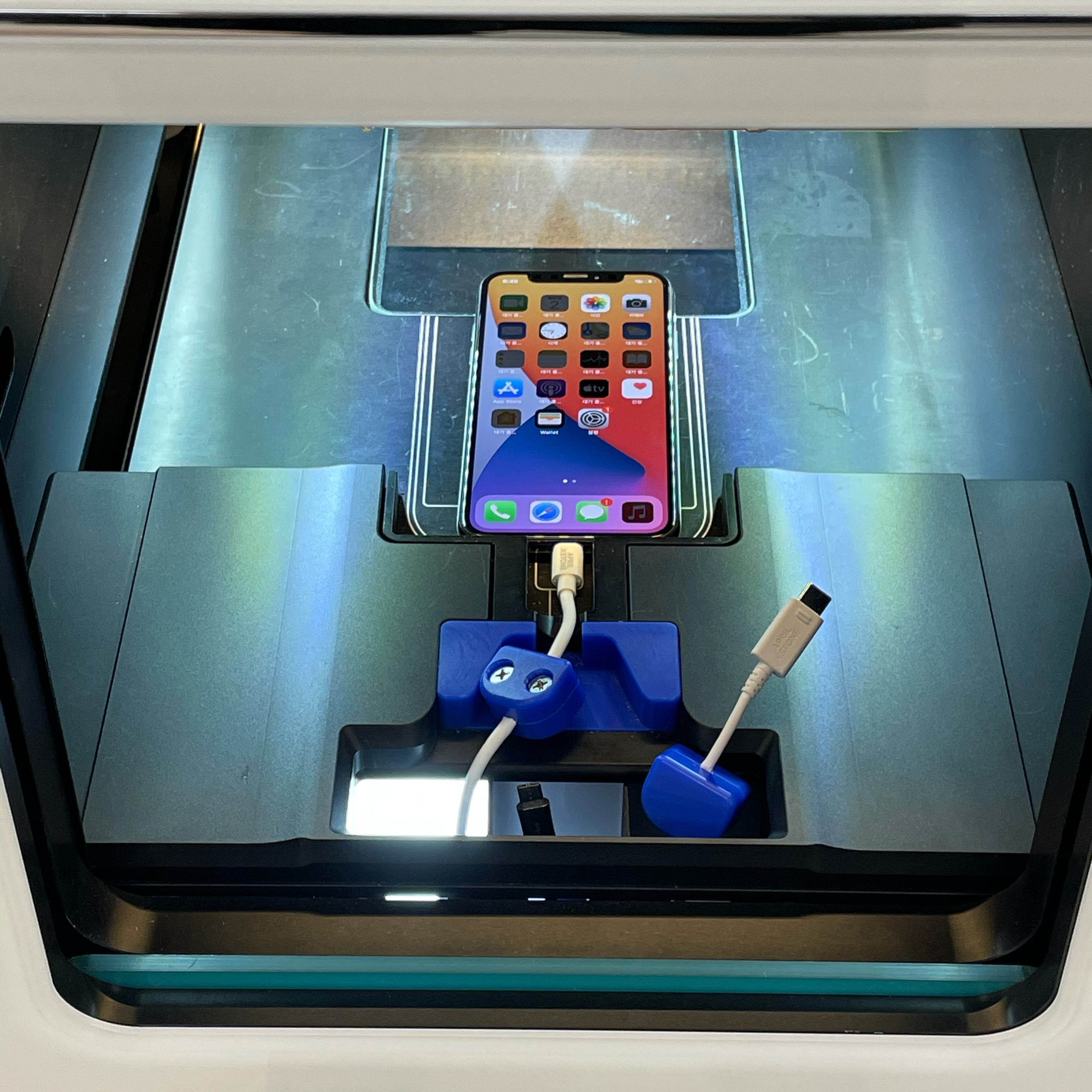 이제 마지막입니다. 디스플레이를 켠채로 ATM기계에 폰을 넣어주면 됩니다. 사진과 같이 폰에 맞는 케이블을 폰에 연결해주고 넣어주면 끝입니다. 5핀/8핀/C타입 총 3가지 타입으로 요즘 폰들은 다 지원해주고 있습니다. 그냥 끼고 넣어주시면 되요. 맨처음엔 저렇게 하고 어떻게 하는건지 신기할 정도였습니다. 아!! 여기서 팁 외관을 꼼꼼히 보는 민팃이라 혹여나 먼지나 이물질이 없는지 다시 한번 외관 확인 후 넣어주세요