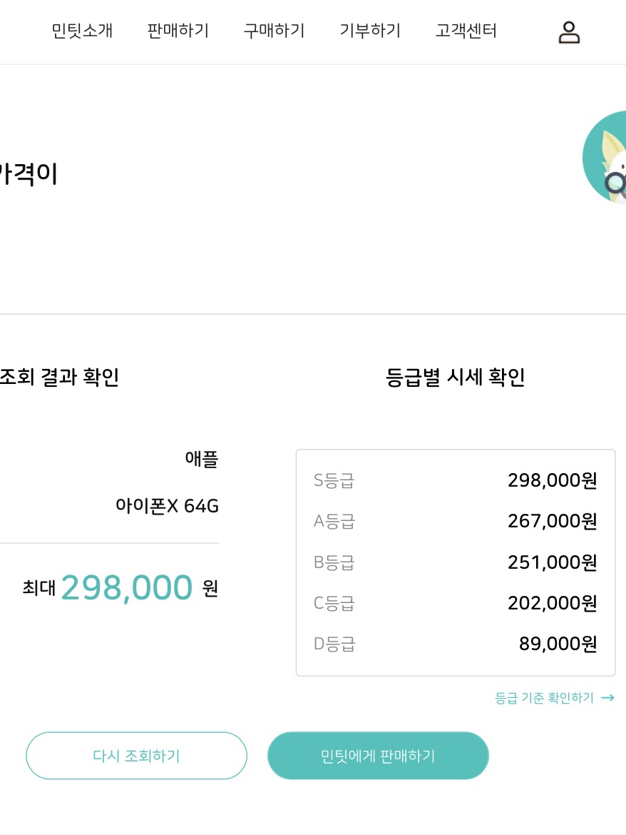 - 실제 민팃에서 나오는 시세와 동일하게 A급으로 나왔습니다. 해당 내용에 대해서는 진단 후 결과가 화면으로 나오고 판매자가 납득할 수 있도록 어느 부분에서 차감이 되었는지 알려주네요. 민팃은 소위 선호색상에 대한 가격변동은 없고, 정말 외관이 얼마나 깔끔한지가 중요한것 같습니다.