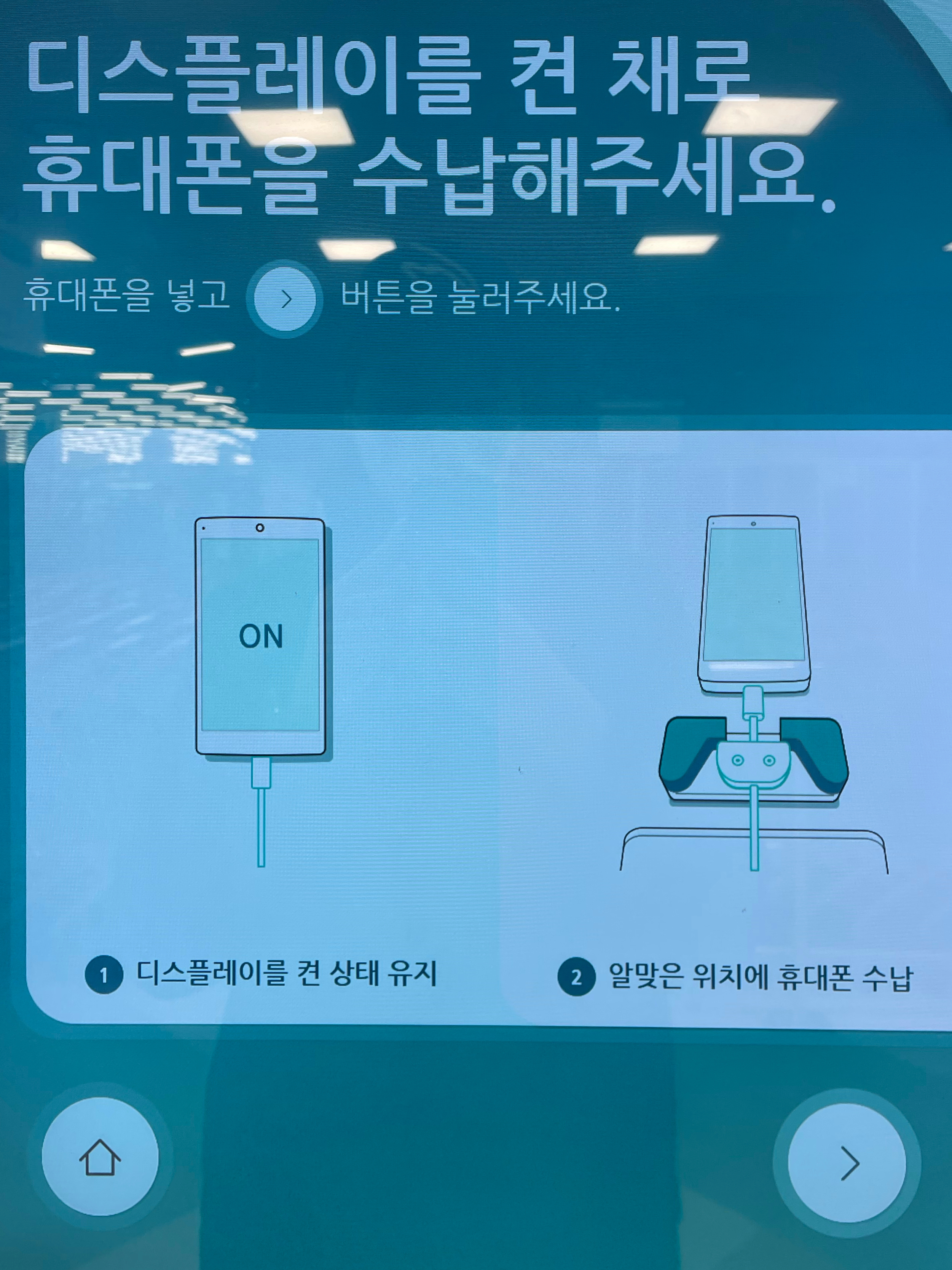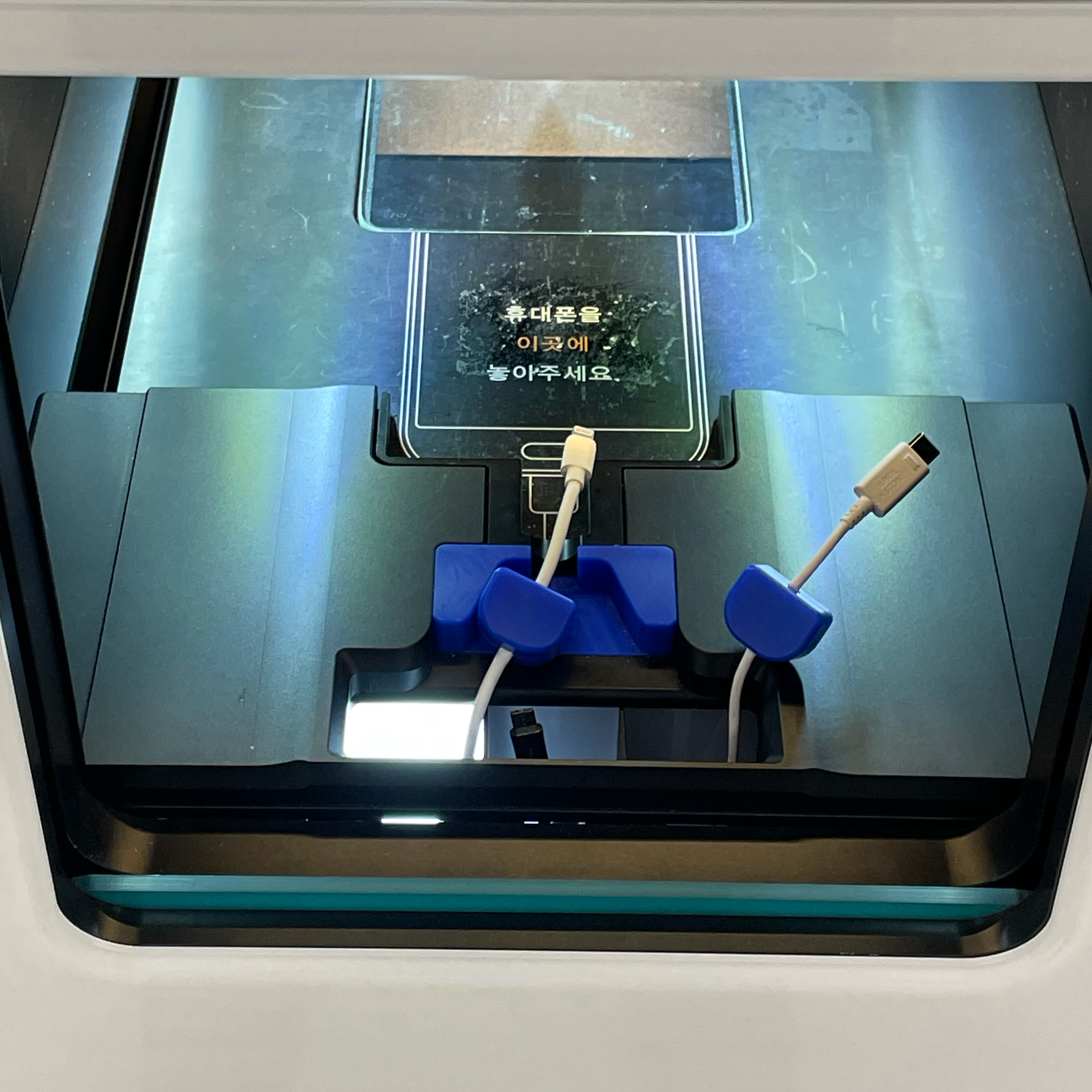 이제 마지막입니다. 디스플레이를 켠채로 ATM기계에 폰을 넣어주면 됩니다. 사진과 같이 폰에 맞는 케이블을 폰에 연결해주고 넣어주면 끝입니다. 5핀/8핀/C타입 총 3가지 타입으로 요즘 폰들은 다 지원해주고 있습니다. 그냥 끼고 넣어주시면 되요. 맨처음엔 저렇게 하고 어떻게 하는건지 신기할 정도였습니다. 아!! 여기서 팁 외관을 꼼꼼히 보는 민팃이라 혹여나 먼지나 이물질이 없는지 다시 한번 외관 확인 후 넣어주세요