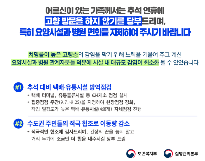 - 9/28 부터 시작되는 추석연휴 고향방문을 지양토록 안내