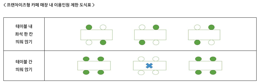 - 프랜차이즈형 식음료 매장의 테이블간 띄워앉기를 통한 매장 좌석 이용인원 제한