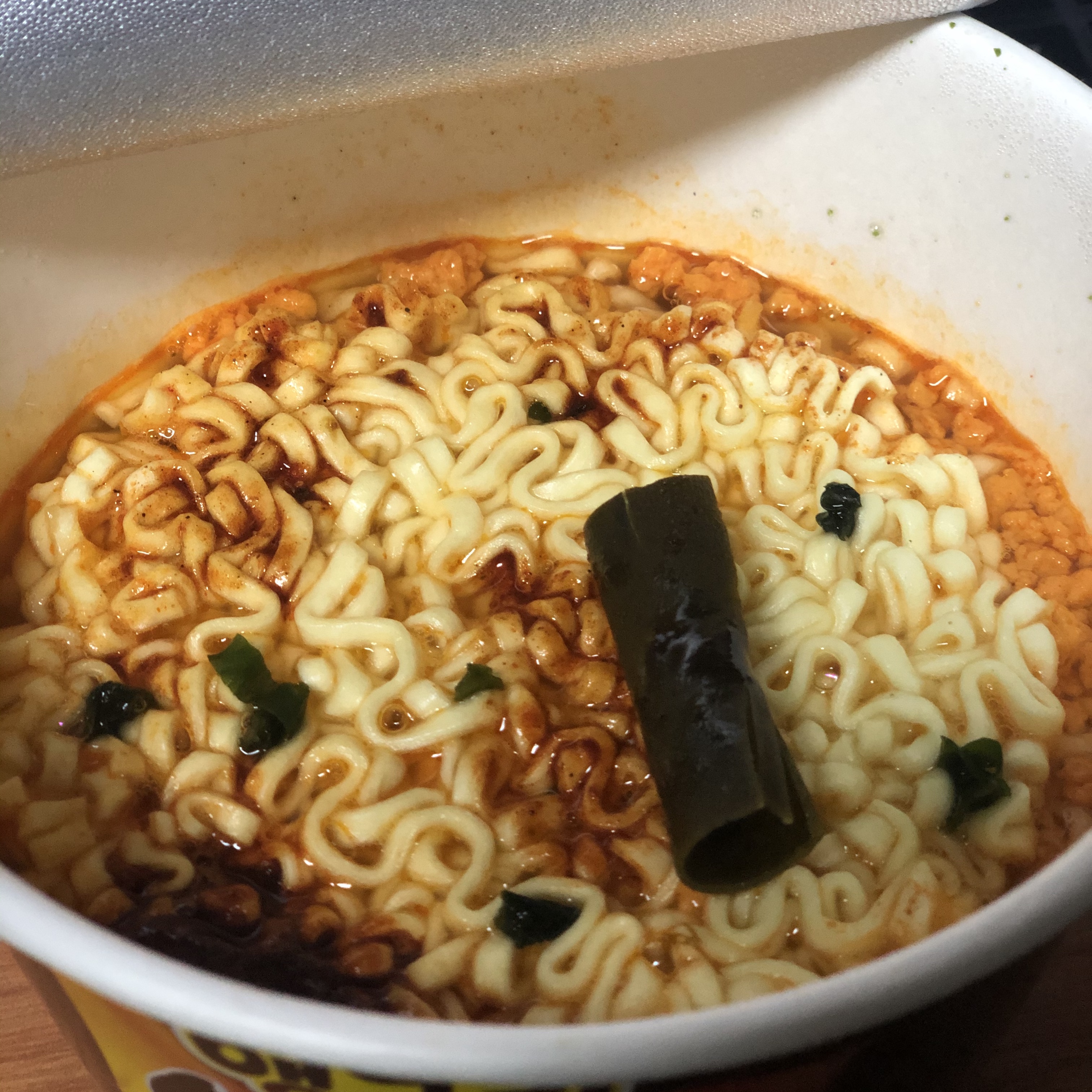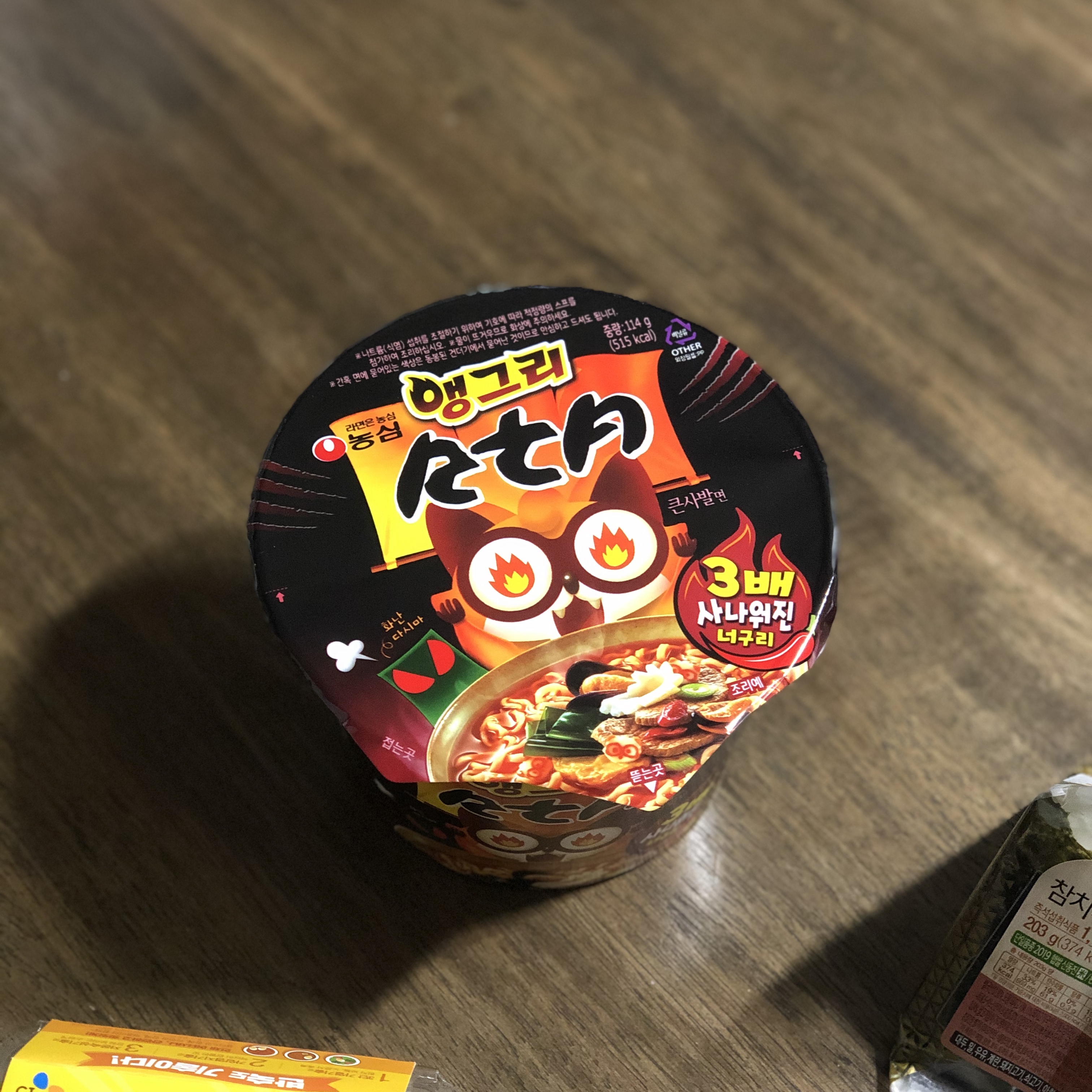 너구리의 느낌은 있으면서 매운맛을 더한 시원한 맛입니다. 안그래도 밥을 말아먹고 싶어서 삼각김밥을 사왔는데 어울려서 김밥 2개를 순삭했네요