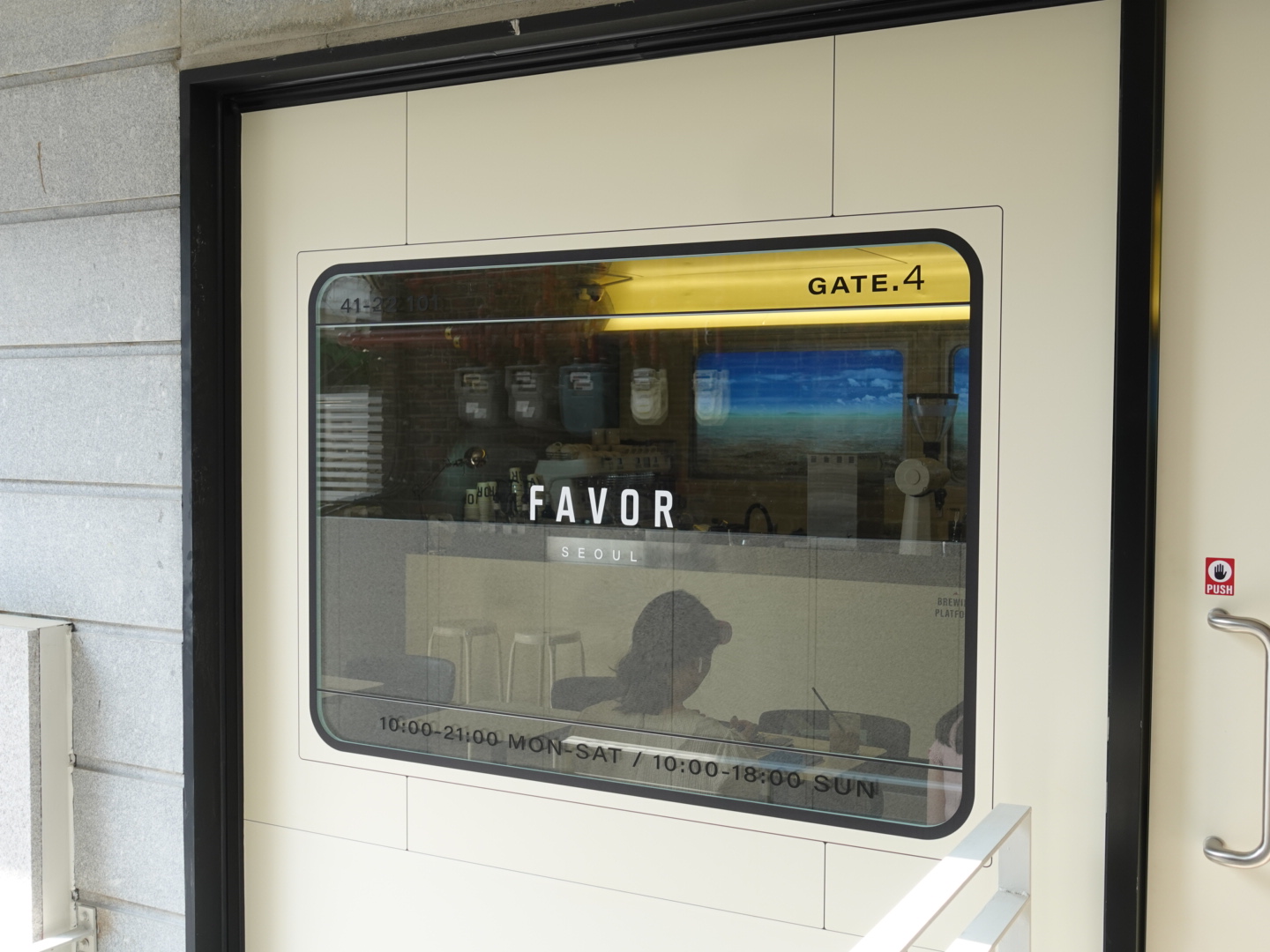 매장 외관에서 마치 기차역 플랫폼에서 바라보는 기차의 창가를 떠올리게 하였습니다.