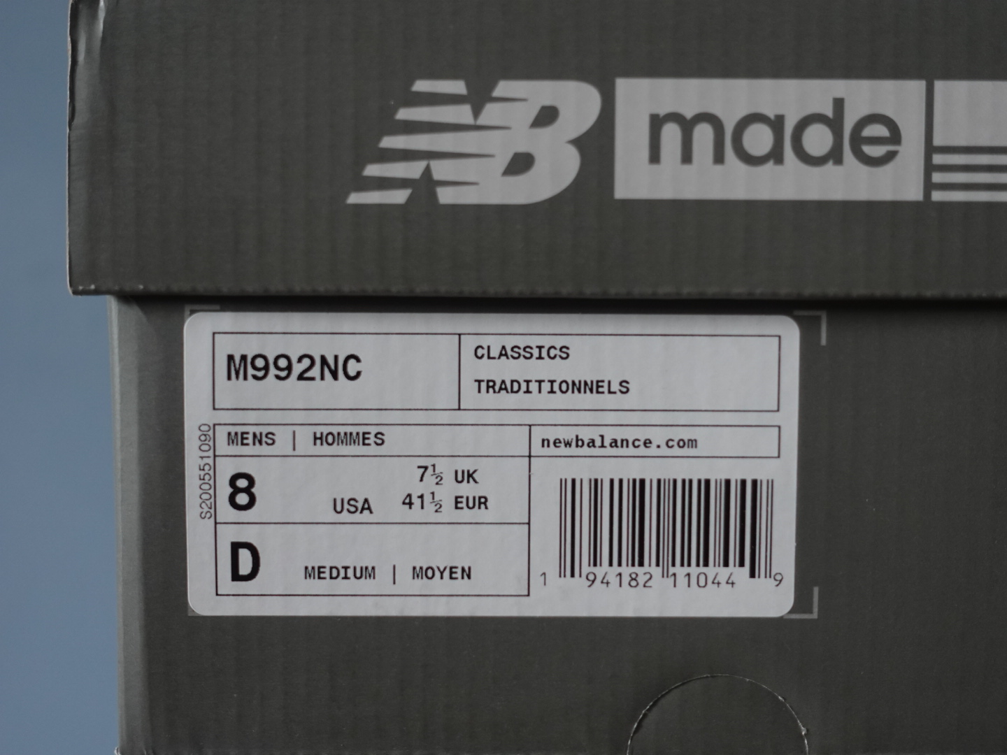 앞면에는 992 시리즈 번호가 적혀있습니다. 대게 뉴발란스의 시리즈 경우 3개의 숫자로 구성되어 있는데, 혹시 본인이 뉴발란스 신발을 가지고 계시다면 어떤 시리즈의 신발을 신고 계신지 확인하셔도 좋을 것 같아요.