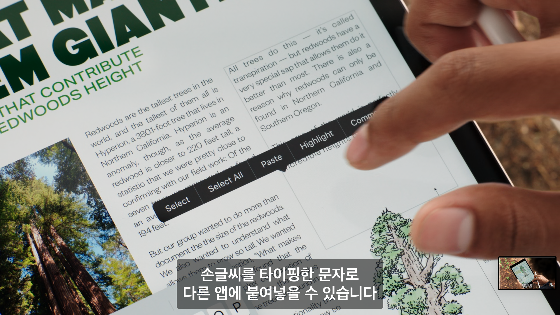 - 애플펜슬의 업데이트로 애플펜슬로 쓴 글씨를 인식하여, 문서에 붙여넣기 또는 텍스르로 입력이 가능해졌습니다. 또한 지우개 기능이 들어가 있어서 하단 사진처럼 글씨를 지우면 사라지게됩니다. 영어에 한정되어있는지 전 언어인지는 잘 모르겠습니다. (하지만, 아시아권은 좀 더 시간이 걸릴것 같습니다. 한자라던지 한글처럼 조합이 많아서 제대로된 인식이 어려울것 같긴하네요)