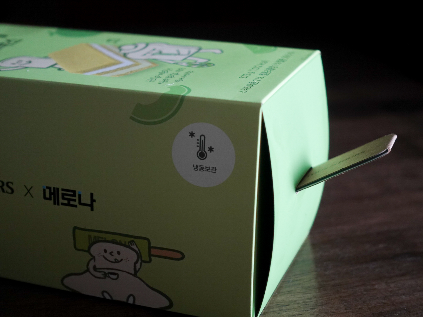 지난번 메로나 케이크와 같이 패키지가 엄청 귀엽습니다. 마치 메로나 모양을 따온게 귀엽네요