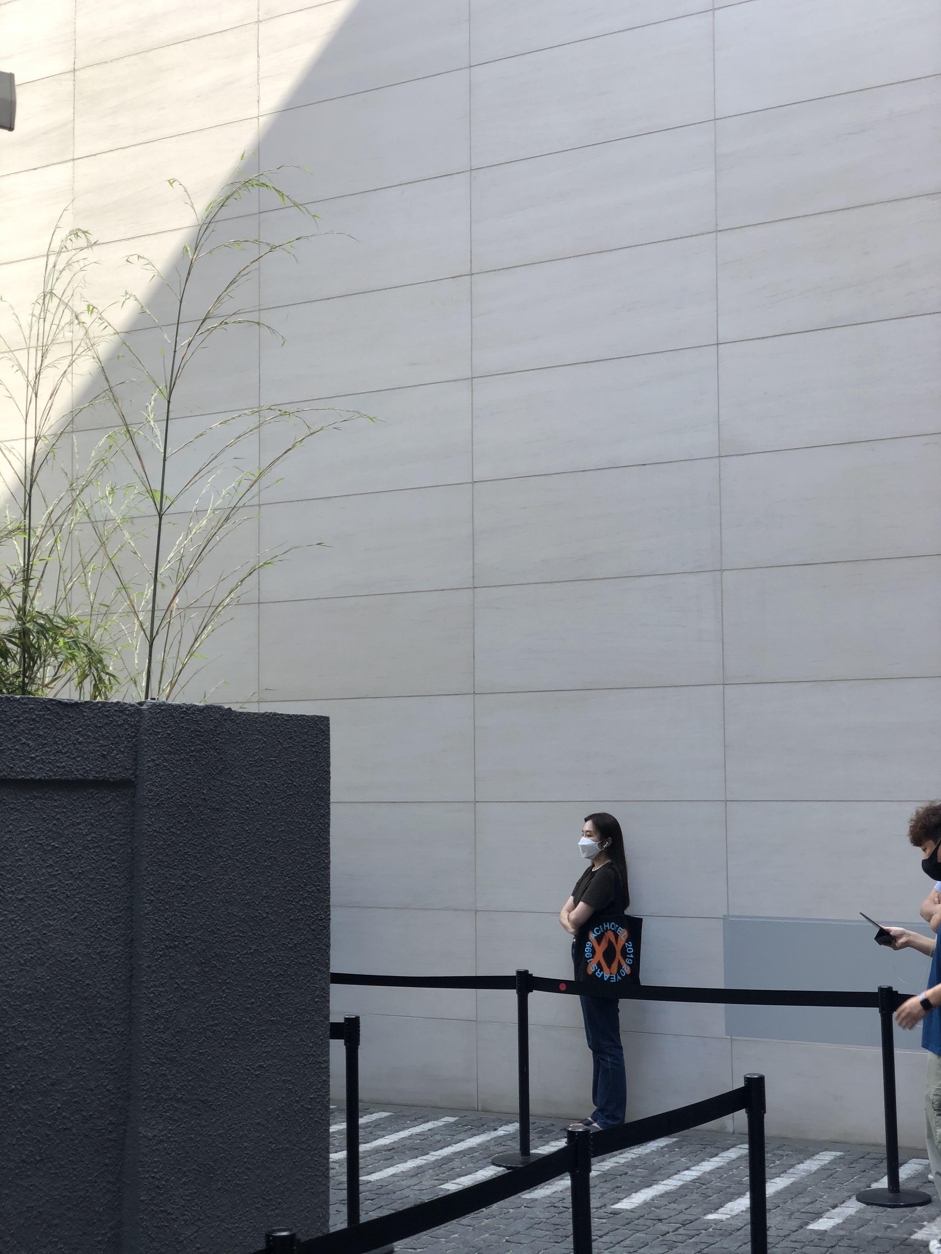 이렇게 입장을 위해 대기하는 줄이 따로 마련이 되어 있고 펜스를 기준으로 각 2m씩 거리두기를 하고 있습니다.