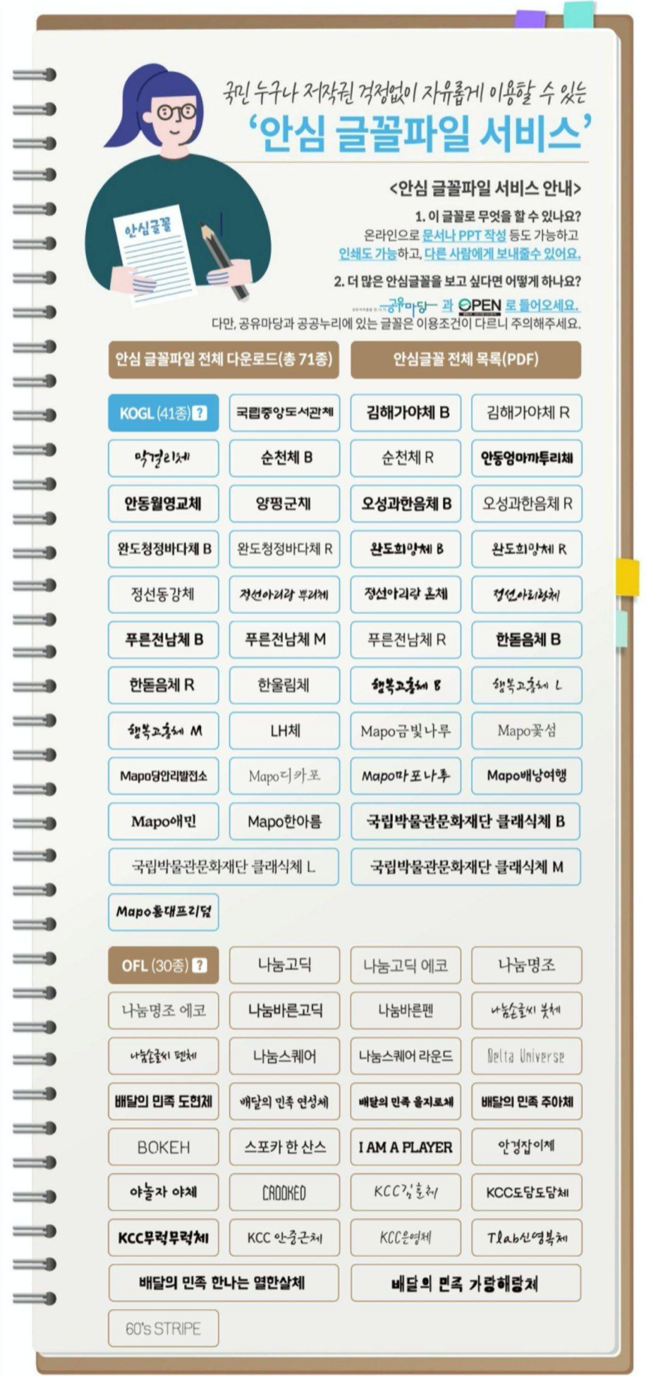 안심하고 쓸 수 있는 폰트 총 71종을 배포했습니다.
