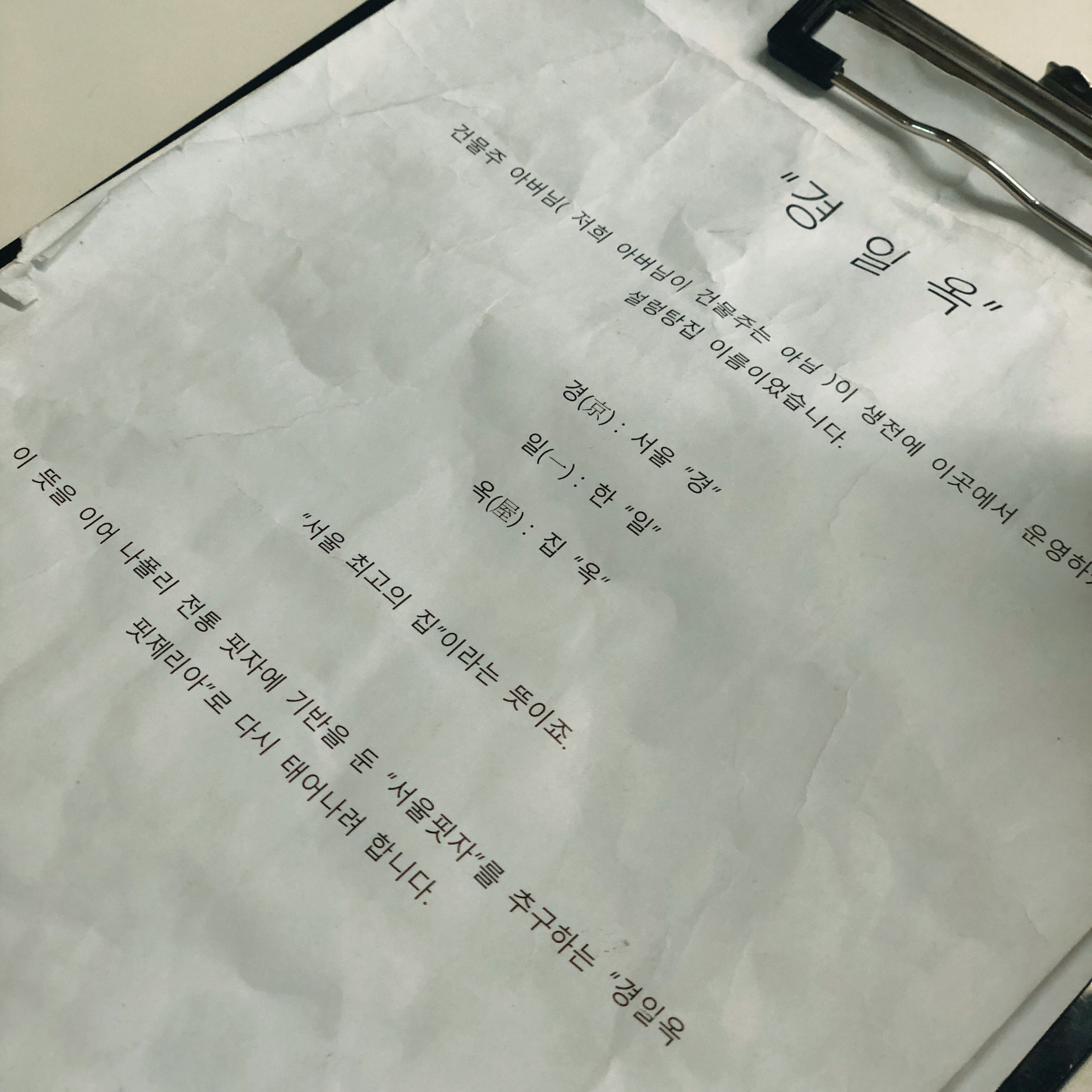 경일옥(京一屋) “서울 최고의 집” 이라는 뜻의 설렁탕 집에서 이제는 피자집이 되었다.
