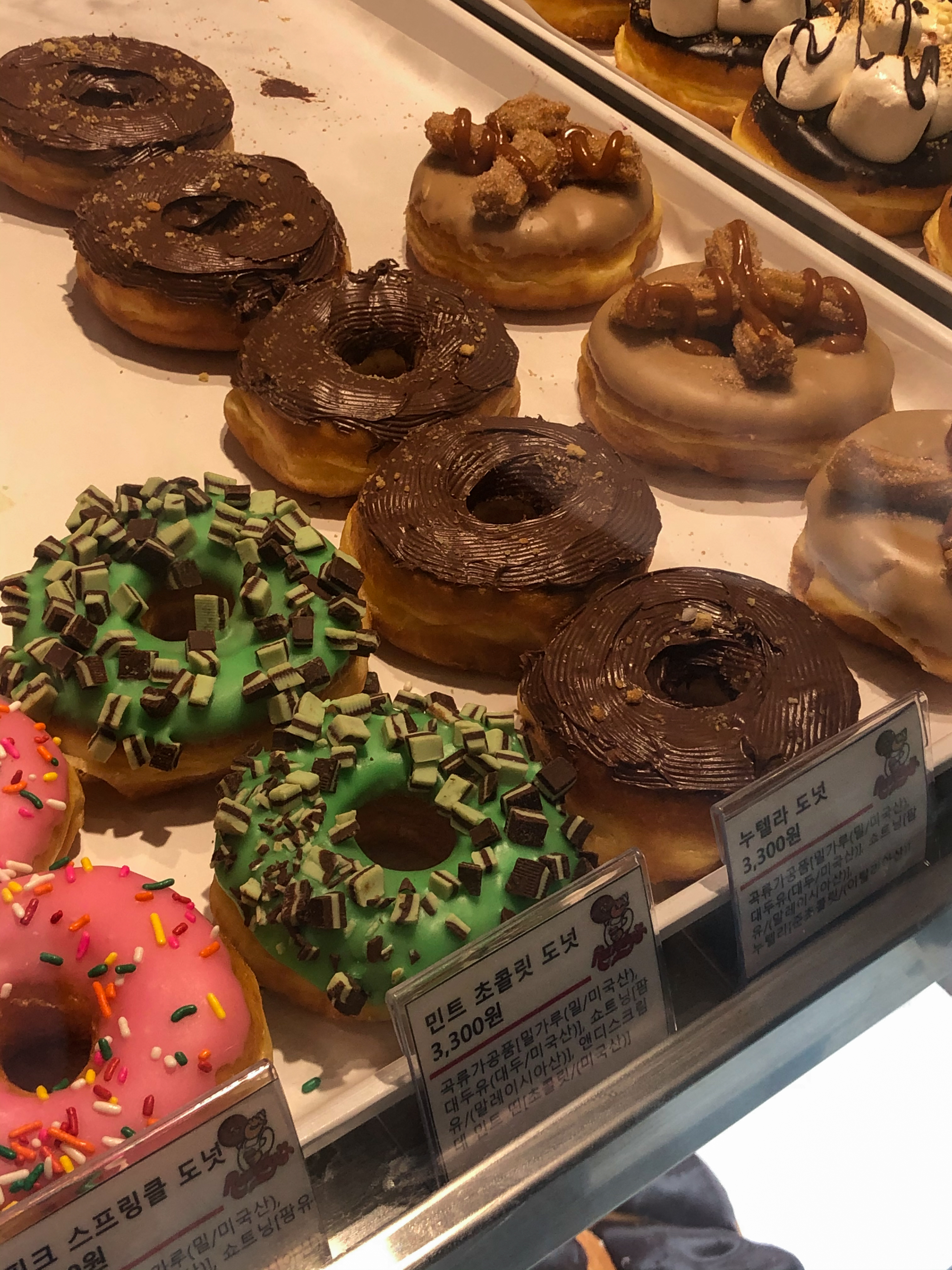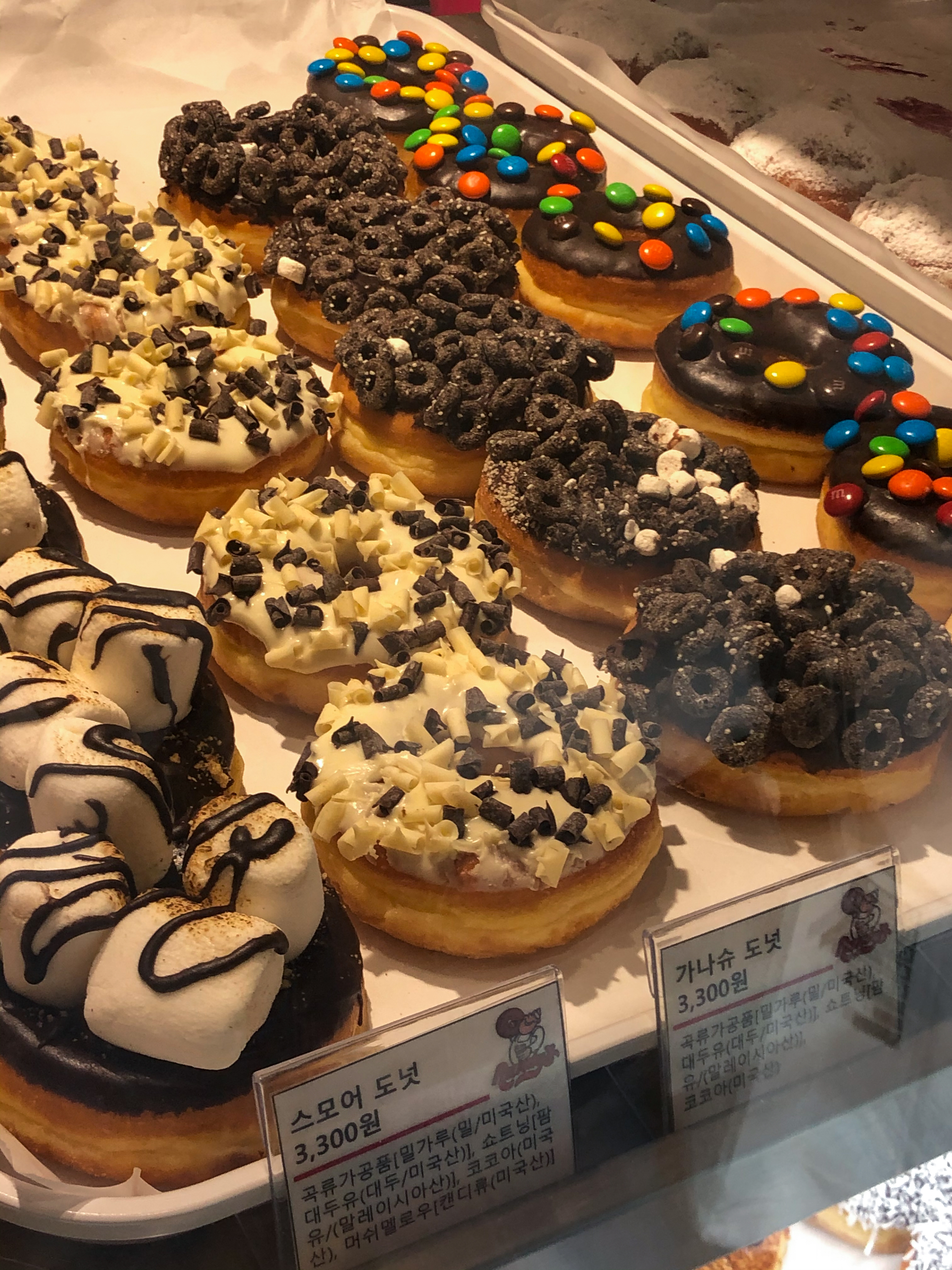 진짜 다양한 토핑이 올려져있는 도너츠가 이렇게 모여있으니 보는 맛은 일단 합격점입니다.