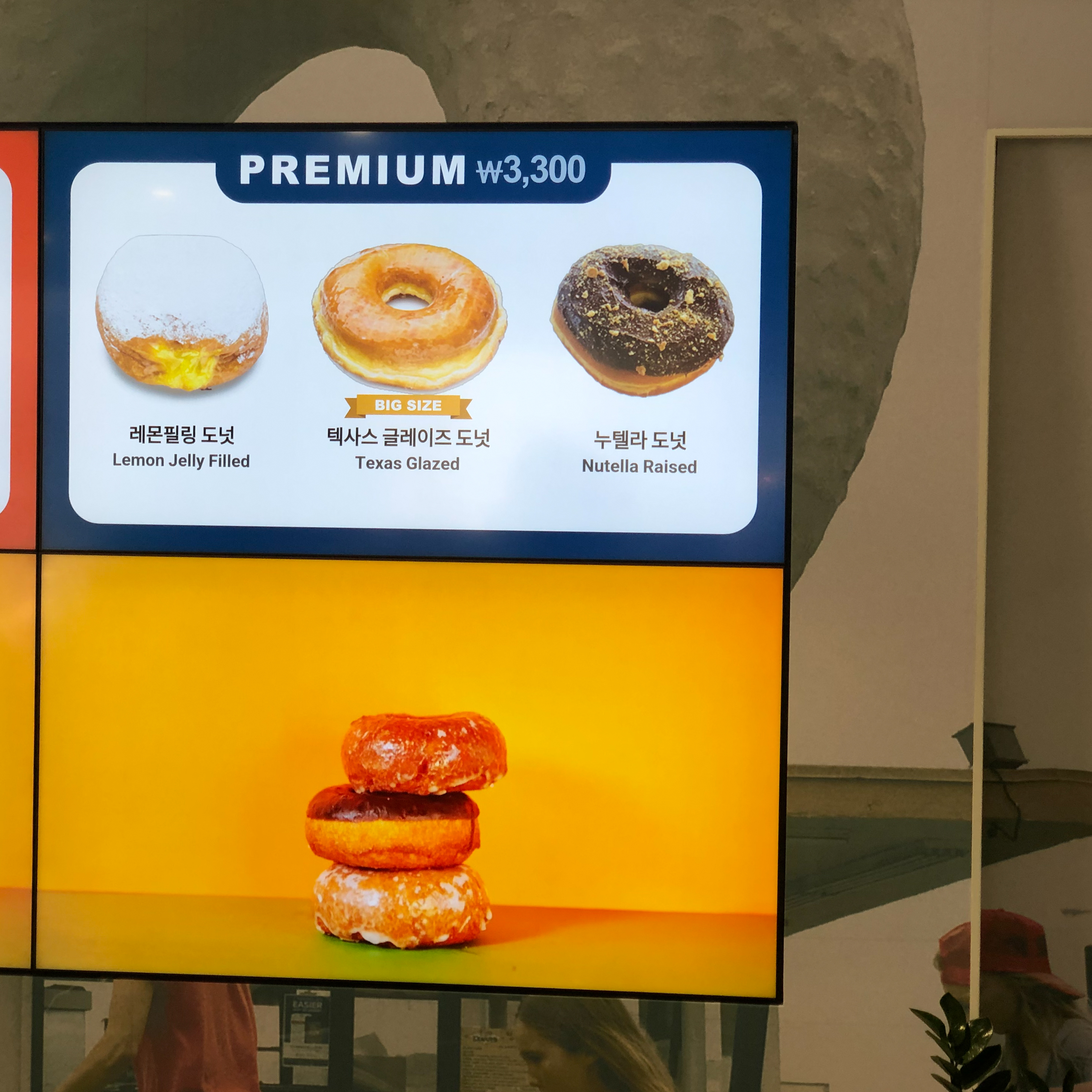 기다리는 동안 벽면쪽엔 스크린을 통해서 랜디스 도넛 홍보영상과 대표 메뉴들을 소개해주는 영상도 같이 흘러나오고 있었습니다.
