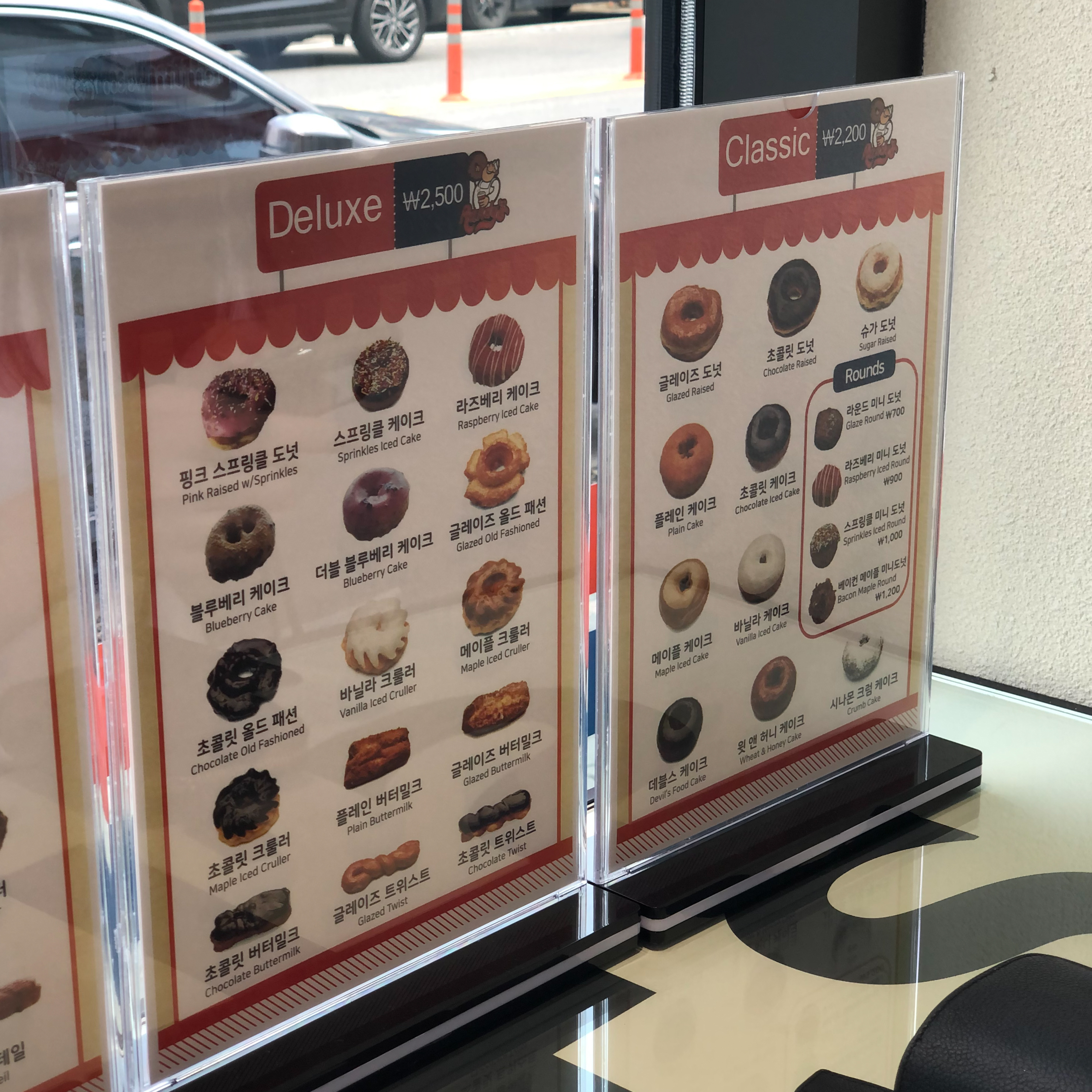 전체적으로 우리가 던킨도너츠나 크리스피도너츠에서 많이 보았던 클래식한 도너츠부터 츄러스라던지 오레오 등등
