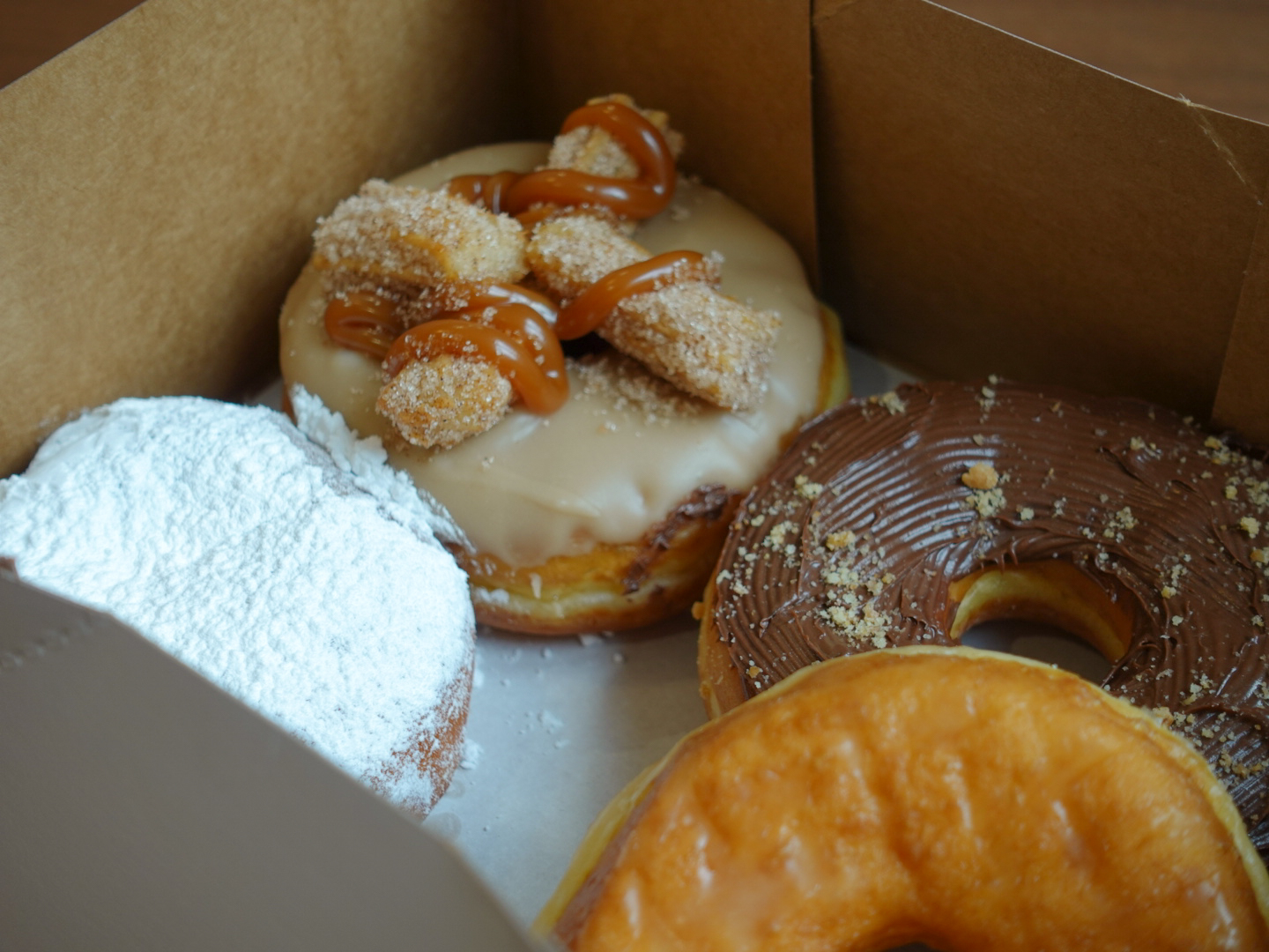 저희가 구매한건 사진 12시부터 시계방향으로 츄러스도너츠, 누텔라도너츠, 글레이즈도너츠, 레몬필링도너츠입니다.