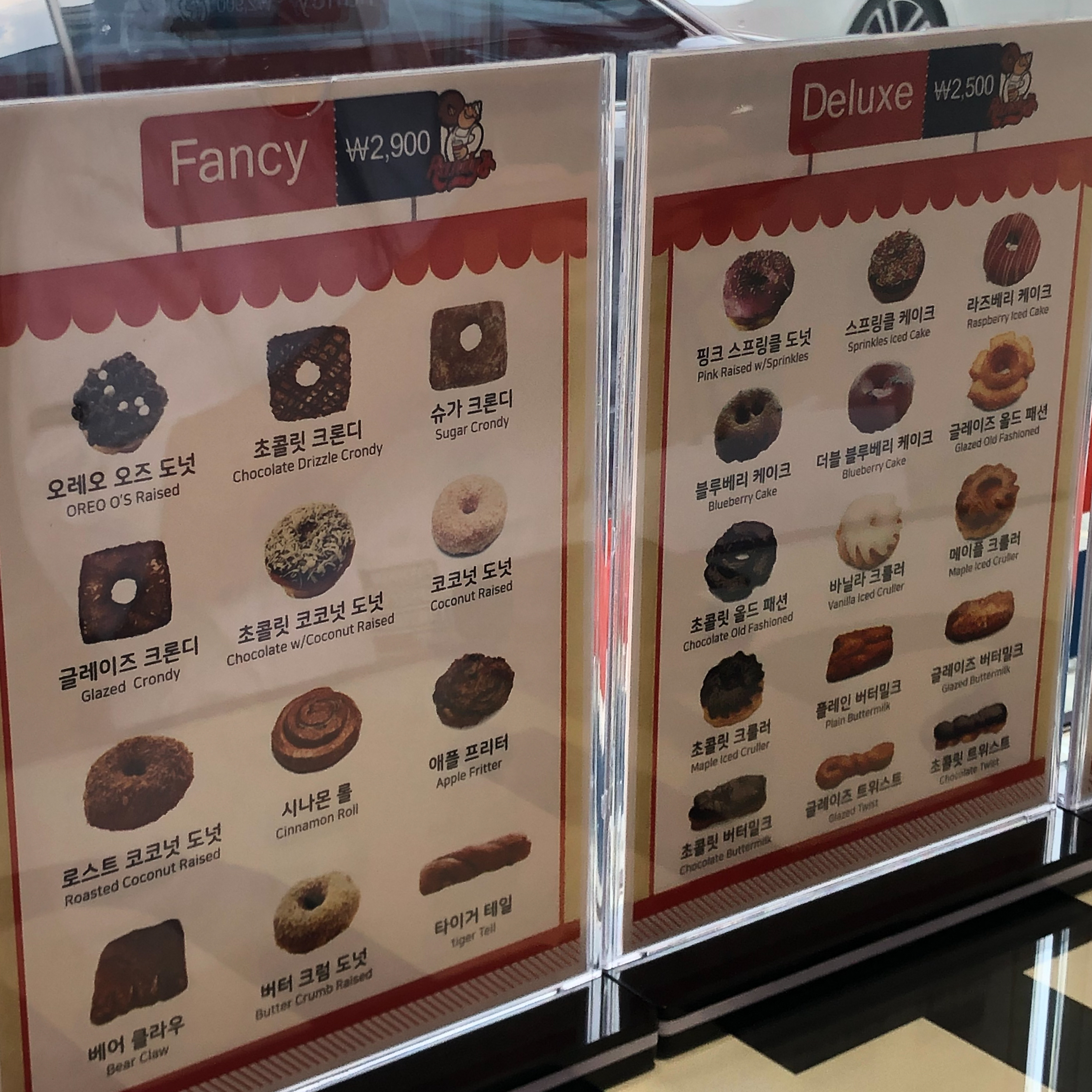 전체적으로 우리가 던킨도너츠나 크리스피도너츠에서 많이 보았던 클래식한 도너츠부터 츄러스라던지 오레오 등등