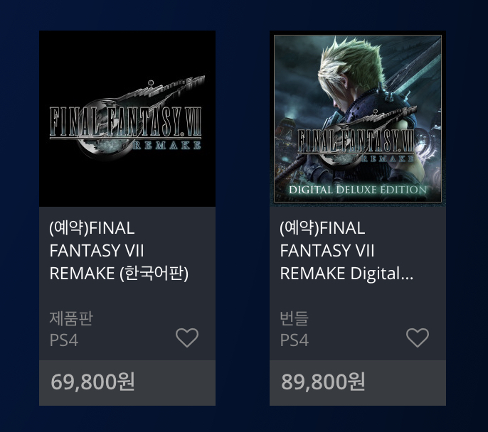 저는 파판7 리메이크 출시 소식만 듣고있다가 오프라인/온라인 예약구매를 놓쳤습니다.