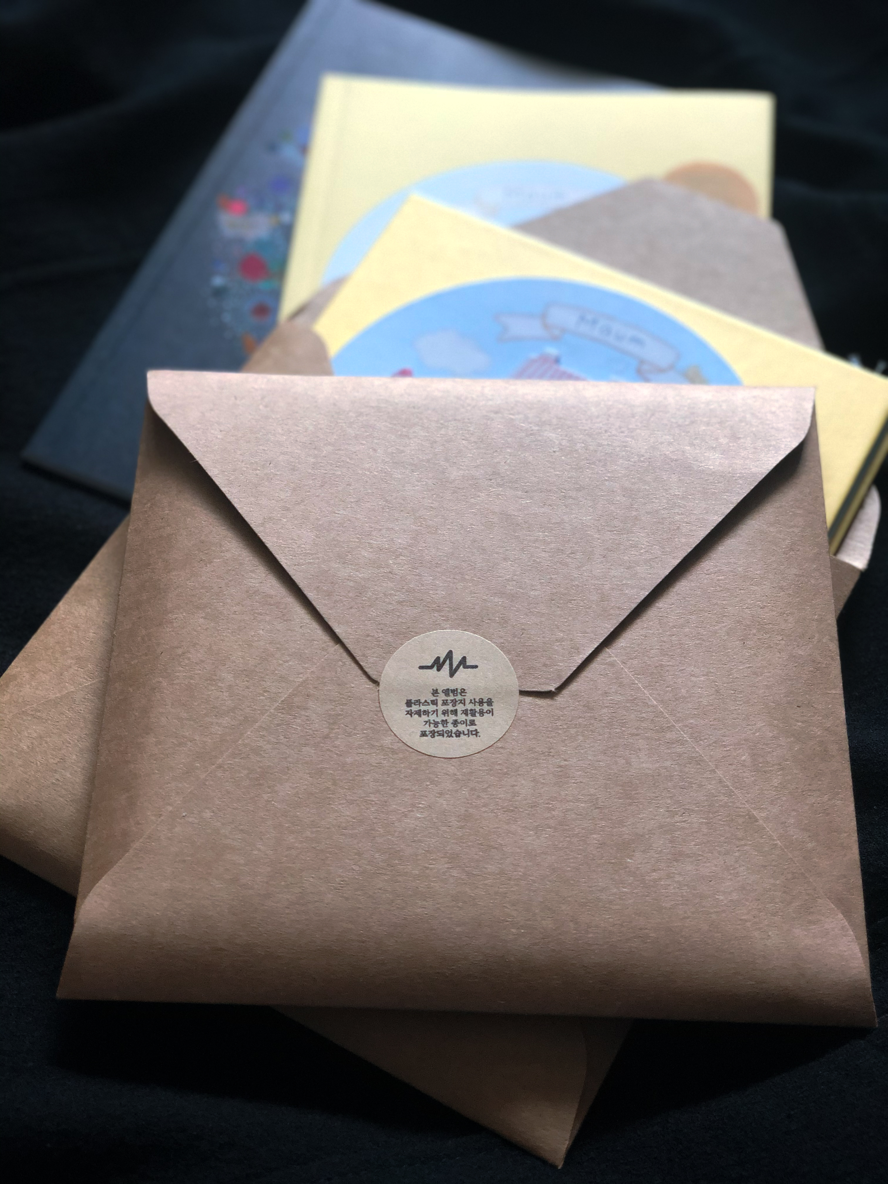 이번 앨범은 기존에 나온 앨범들과 다르게 플라스틱 소재를 최소화하고 전체적으로 종이나 실같은 소재를 많이 사용했어요. 앨범 그래픽 자체가 크래프트 느낌을 많이 내기에 그런것 같았지만, 실물 앨범도 종이로 포장이 되어 있어 너무 좋았습니다.